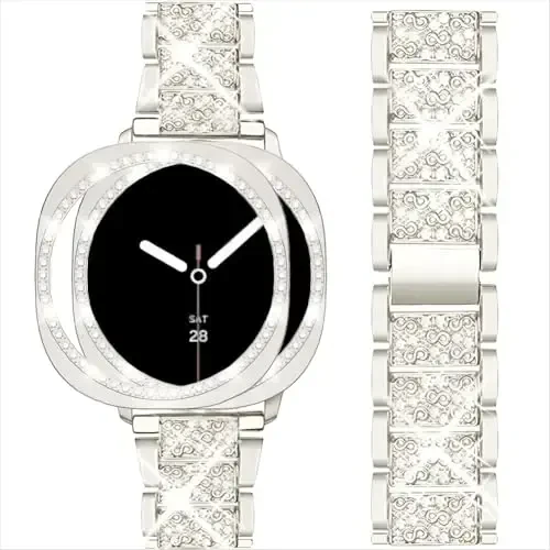 - Металлический браслет Bling: Изготовлен из высококачественного металлического материала и украшен ослепительными блестящими кристаллами. После установки ваши часы приобретают очаровательный и сверкающий вид. Идеально подходит для различных случаев, таких как особые дни для женщин, свадьбы или повседневное использование.