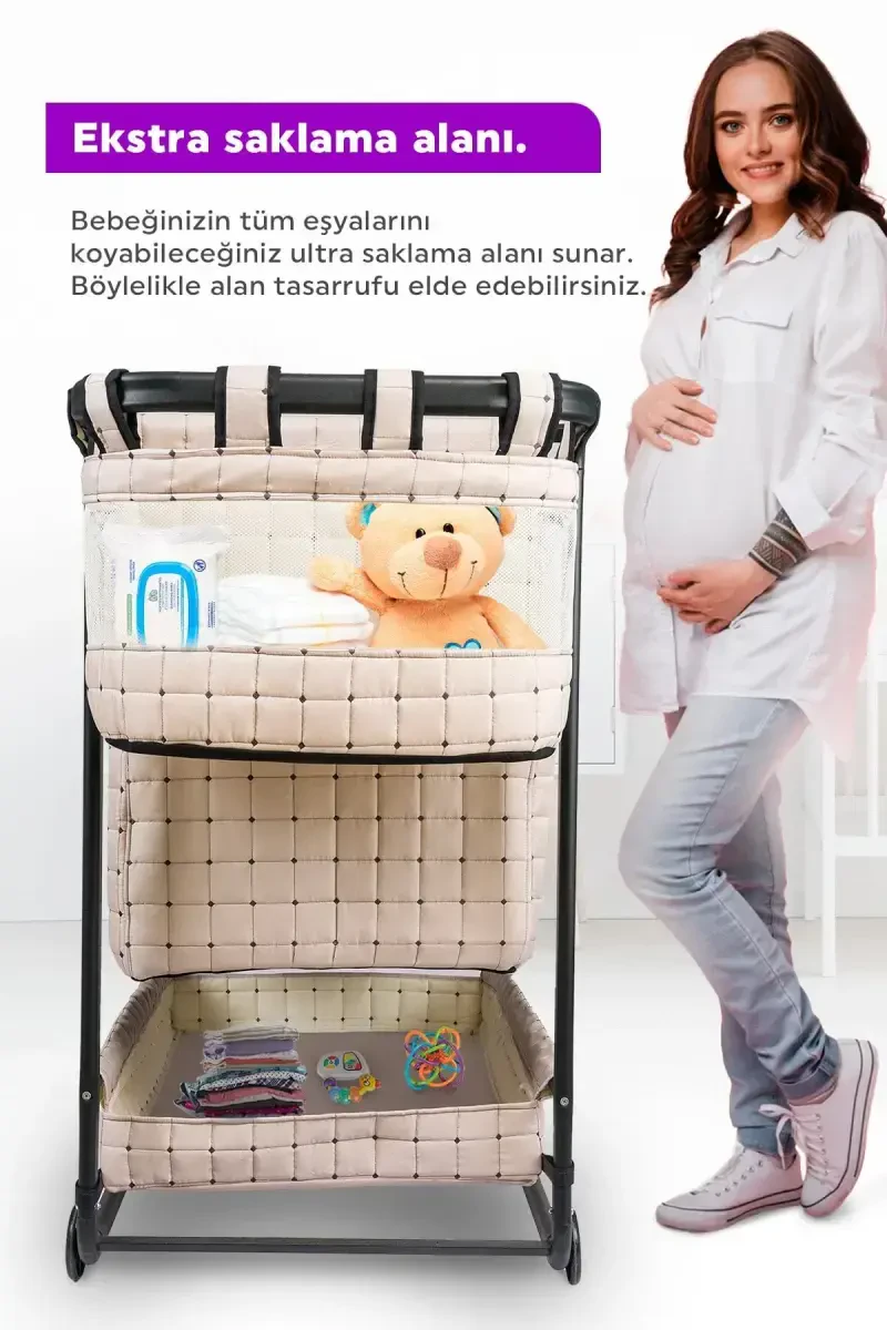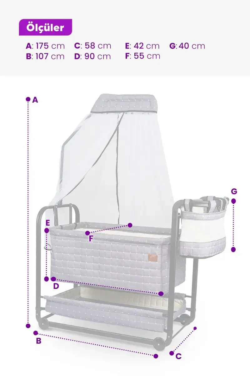 Mother Side Swinging Baby Cradle is designed to ensure your baby has a safe and peaceful sleep experience. Suitable for use from birth up to 10 months, this portable hammock basket cradle impresses with its modern and stylish design. The black scratch-resistant profile body offers a robust and durable structure, while the spacious tulle mosquito net protects your baby from flies and insects. The double bearing and ball swing system provides your baby with a soft and rhythmic swinging motion, making it easier to fall asleep. The spacious basket and sponge fiber mattress gift guarantee that your baby has a comfortable and comfortable sleeping environment. Thanks to its easy assembly and disassembly feature, it offers practical use. With a carrying capacity of 20 kg, this cradle is meticulously designed for your baby's safety. Thanks to its ergonomic design, it supports your baby's spinal development and is also suitable for use by the mother. While ensuring that your baby sleeps comfortably and safely, it also helps you get a comfortable sleep at night. Its modern and stylish design will match the decoration of your home. The sapphire color adds an elegant touch to your baby's room. Thanks to the wheels of the cradle, you can easily move it and carry it to the room you want. When your baby grows up, you can easily disassemble and store the cradle. This cradle is designed to provide the best sleeping environment for your baby.