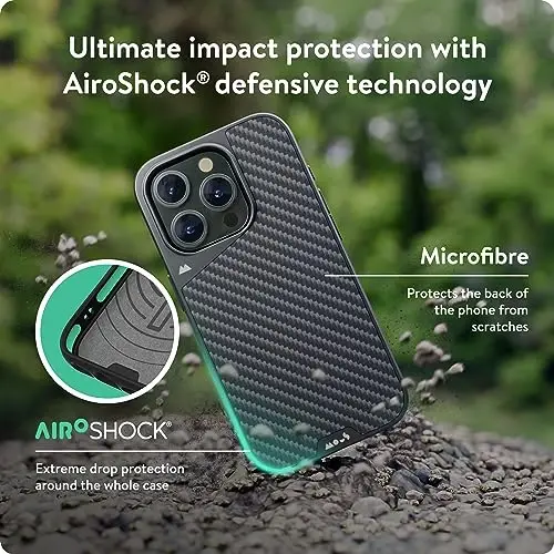 UNMATCHED SHOCKPROOF DEFENSE – Experience unparalleled protection with AiroShock. Our high-impact material is designed to absorb and disperse energy so your iPhone 15 Pro stays protected from drops SEAMLESS MAGSAFE INTEGRATION – Get your iPhone 15 Pro case MagSafe ready. Our strong magnetic connection ensures optimized and fast wireless charging, plus full compatibility with MagSafe accessories PREMIUM MATERIALS – Crafted from premium Carbon Fiber, reinforced with polycarbonate with rippled ribs for enhanced grip. This Mous Case is a heavy-duty design that doesn't bulk up your pocket A WARRANTY THAT LASTS A LIFETIME – We stand behind our workmanship. Every Mous case offers an unmatched limited lifetime warranty. Got problems? We're always here; customer support is at our core TRUSTED BY MILLIONS OF CUSTOMERS – We put our phone cases through rigorous tests to prove their durability. From helicopter drops to tossing them off roofs, our iPhone 15 Pro mag safecase is built to last