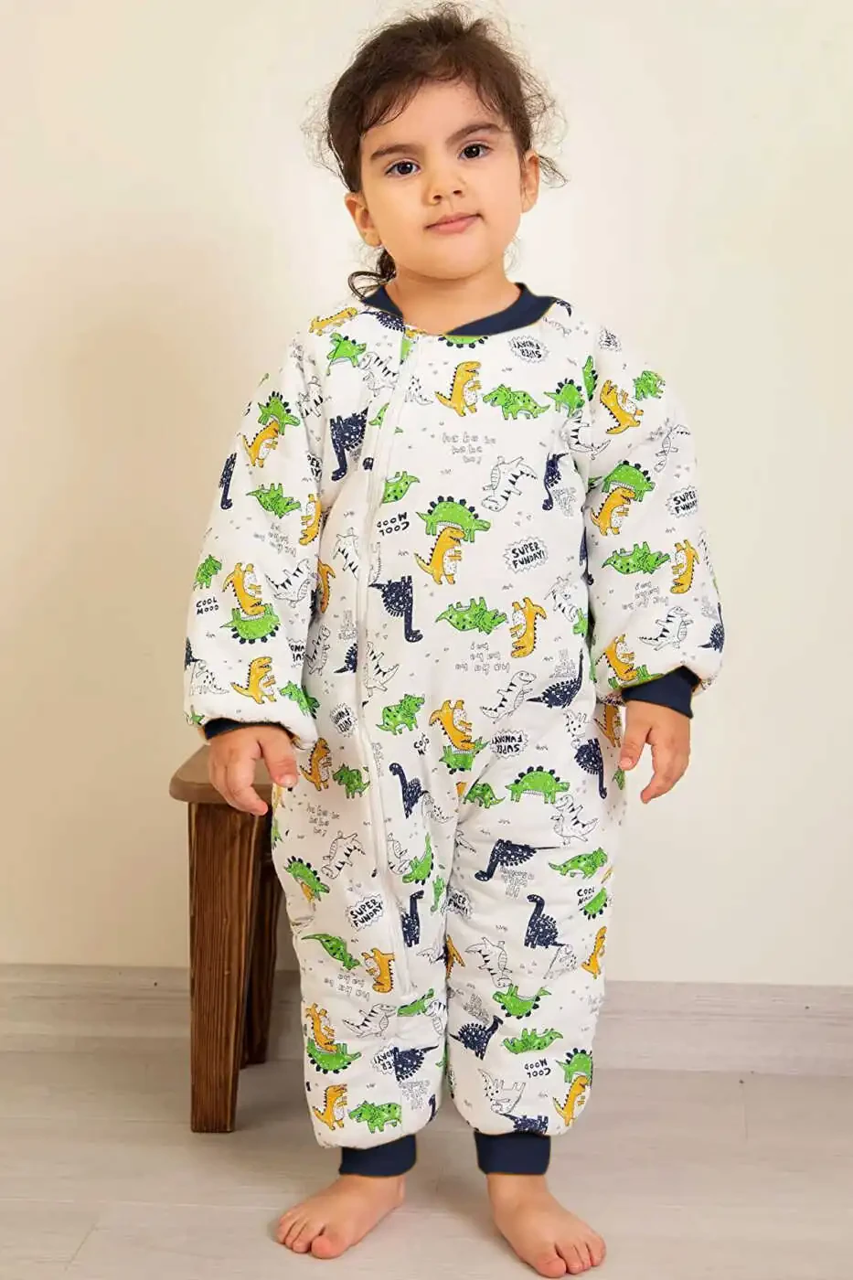 Bu ko‘k chiziqli dinozavr naqshli uxlash kostyumi bolangizning eng sevimli uxlash sherigi bo‘ladi! Hoziroq buyurtma bering va bolangizga iliq va qulay tun uyqusini taqdim eting.