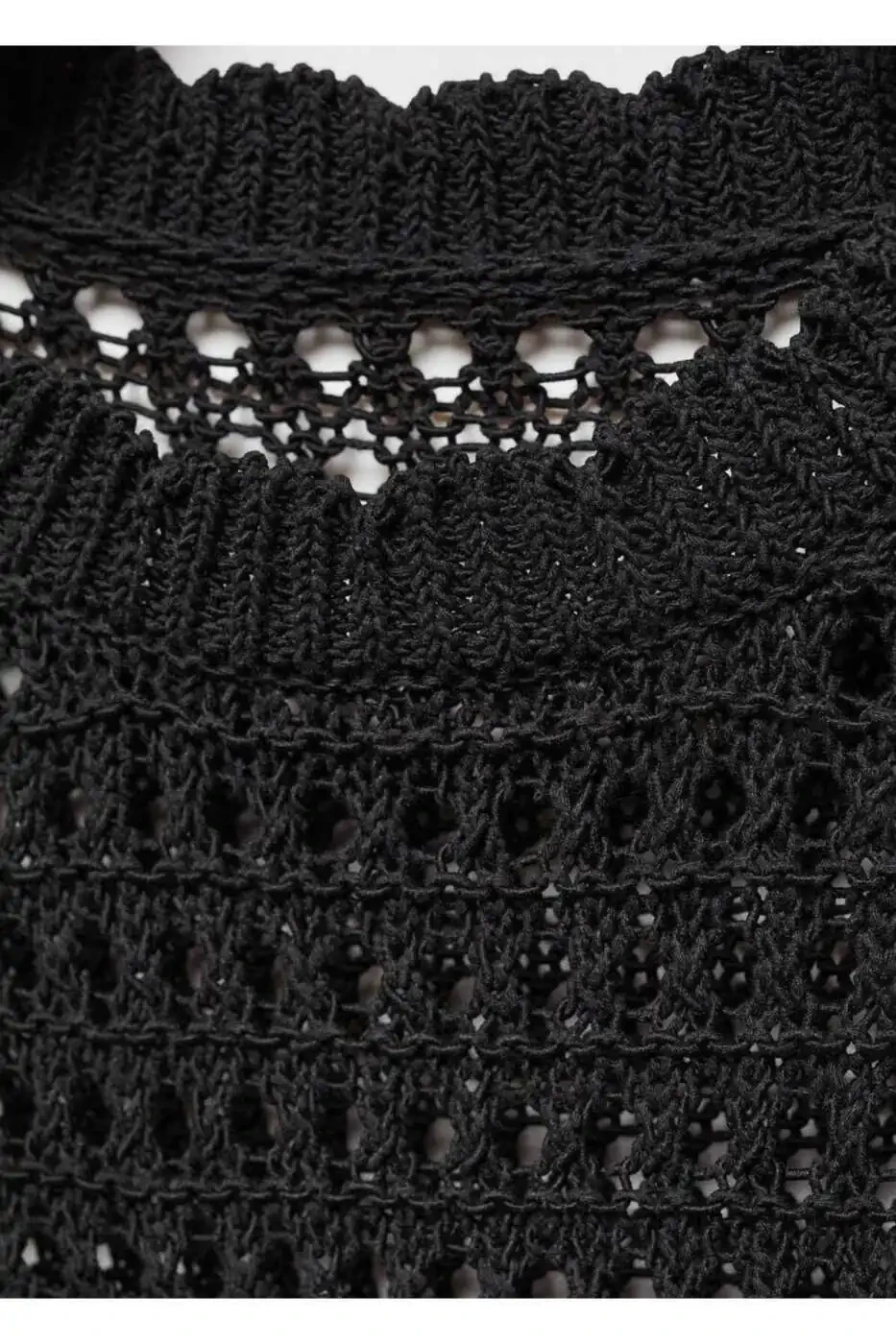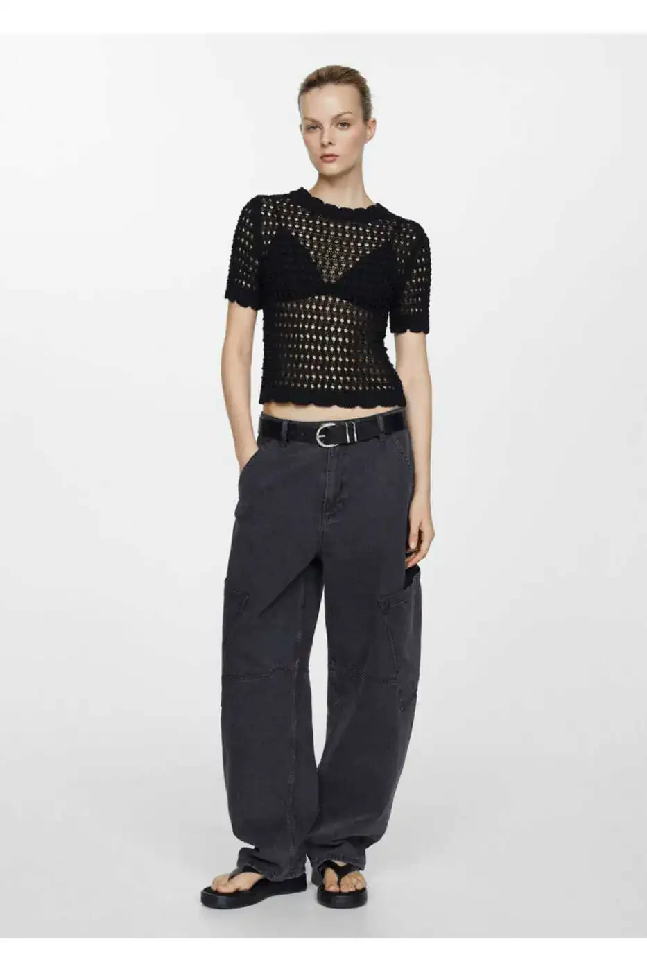 Ajur detallı triko kozok rahatlik va go'zallikni o'zida mujassamlashtirgan bo'lib, har bir ayol gardrobidagi zarur elementlardan biri hisoblanadi. Uning yumshoq paxta aralashmasi matosi va nafis ajur detallari sizga ham kundalik hayotda, ham ham bayramona kunlarda ajoyib ko'rinishga erishishga yordam beradi. To'g'ri kesim va yumaloq yoqasi abadiy go'zallik bag'ishlaydi, kalta qo'llari esa issiq yoz kunlari uchun juda mos keladi.
