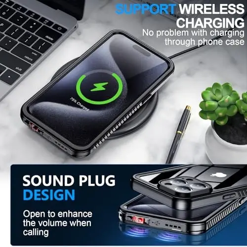 【IPX8 Waterproof iPhone 15 Pro Max Phone Case】MOZOTER waterproof phone case is specially designed for the 2024 new release of iPhone 15 Pro Max. The MOZOTER brand iPhone 15 Pro Max phone case is IPX8 waterproof certified; the iPhone 15 Pro Max protective case is ideal for swimming,snorkeling,surfing and other outdoor activities (can be submerged to a depth of 6.6'/1.5 m for 30 minutes). We recommend performing a waterproof test on the phone case first,then placing your 15 Pro Max in the case 【Built-in HD Screen Protector】This waterproof case specially designed for iPhone 15 Pro Max comes with a built-in screen protector. The carefully designed 2.5mm lip above the camera and 1.5mm bezel around the screen on the back provide additional comprehensive protection 【Built-in HD Lens Protector】The specially designed black camera lens HD protective film provides sufficient protection for the camera,maintaining the original beauty of every photo you take.The superior anti-slip soft side bumpers take your phone's grip to another,firmer level,providing a comfortable holding experience for daily use.The superior anti-slip soft side bumpers take your phone's grip to another,firmer level,providing a comfortable holding experience for daily use 【360 Degree All-Round Protection】MOZOTER 2024’s latest shockproof case is specially designed for iPhone 15 Pro Max phone cases and is certified to exceed military-grade drop test standards and can withstand drops of up to (3.6m) and keep your phone safe. The unique double-layer shock-absorbing design and 4 anti-collision corners effectively absorb and disperse 99% of the impact force. Provides super drop and shockproof protection for your phone 【Perfect Fit & Clear Sound】The iPhone 15 Pro Max's case is 100% original and fits perfectly,with precisely calculated cutouts and responsive buttons. Precise cutouts allow easy access to each port and fit perfectly with most screen protectors on the market,just right. Specially designed for the iPhone 15 Pro Max waterproof case,special materials are introduced to provide full body protection while maintaining clear sound quality