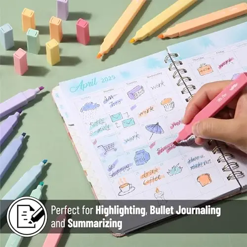 Mr. Pen aesthetic highlighters includes a 10-pack of colorful chisel-tip markers, designed to bring organization and style to your study sessions, journaling, or note-taking. These highlighters feature premium no-bleed ink, making them ideal for use on delicate paper such as Bibles, notebooks, or planners. The chisel tip offers dual functionality, allowing for both thick highlights and fine underlining with precision and ease. Each pen is designed with a sleek, flat barrel for comfortable grip and to prevent rolling off desks during use. With a wide range these aesthetic school supplies add fun and clarity to your workspace while supporting color-coded productivity.