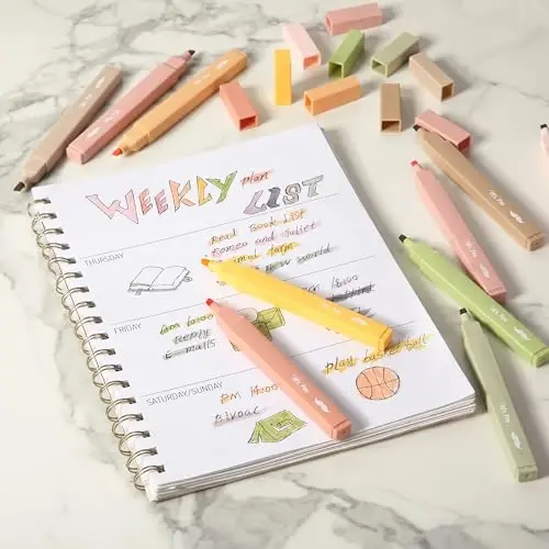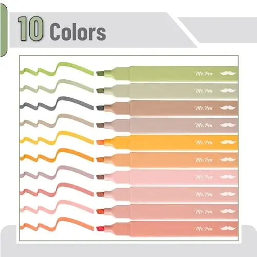 Mr. Pen aesthetic highlighters includes a 10-pack of chisel-tip markers in warm, muted boho colors that add a soft, stylish touch to your notes, planners, and study materials. Each highlighter is filled with premium no-bleed ink, making it ideal for use on delicate paper such as Bible pages and journals without smudging or bleeding through. The chisel tip allows for versatile marking, enabling both wide highlighting and fine underlining to suit your study or creative needs. Designed for comfortable everyday use, these highlighters provide smooth ink flow and excellent color payoff on a variety of paper types. With a carefully selected range, this set is perfect for those who value minimal, aesthetically pleasing school or office supplies.