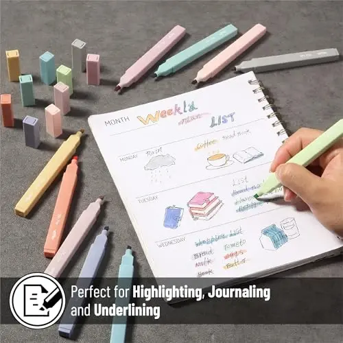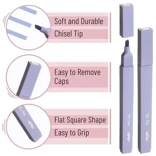 Mr. Pen aesthetic highlighters includes a 10-pack of retro-colored chisel-tip markers, perfect for adding a stylish touch to notes, journals, or study guides. These highlighters are made with premium ink designed specifically to be no-bleed, making them ideal for delicate Bible pages or thin paper. Each highlighter features a sleek, compact design that’s easy to grip and fits perfectly in pencil cases or pockets. The chisel tip allows for both broad highlighting and fine underlining, giving you versatile control over your markups. With soft, muted tones, these aesthetic school supplies offer a visually pleasing alternative to traditional neon markers.
