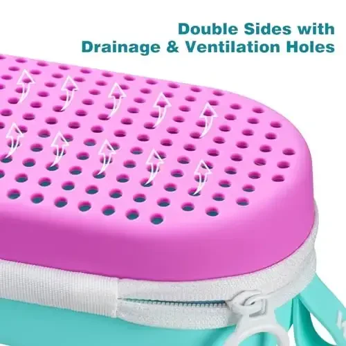The MSNATURALLY Swim Goggle Case is an innovative and practical solution designed to safely store and transport your swimming goggles. Say goodbye to traditional, heavy, and bulky hard-shell cases! This silicone case protects your swimming goggles from scratches, impacts, and other potential damage, while its lightweight and portable design makes your life easier. Made from high-quality silicone material, this case offers excellent flexibility and tear resistance, ensuring long-lasting use. It minimizes abrasions and scratches that can occur from goggles shaking inside the case, keeping them looking like new. The water drainage holes on the case ventilate your goggles, allowing them to dry quickly and preventing unpleasant odors. Now you don't have to waste time drying your goggles after swimming sessions! Thanks to its zippered design, you can easily insert and remove your goggles. The vibrant colors make it easy to find your case in your bag or by the pool. This versatile case is ideal for storing not only your swimming goggles but also your swim cap, quick-drying towel, and other small items. It's the perfect summer accessory you won't want to leave behind on vacations, at the beach, or by the pool. Its compact size doesn't take up much space in your bag or backpack. The MSNATURALLY Swim Goggle Case is a great gift option for swimmers, women, men, teens, children, wives, and husbands. It can be a perfect stocking stuffer for Christmas 2025. If you are not satisfied with our product, you can return it within 1 month. If you have any questions or concerns, please do not hesitate to contact us.