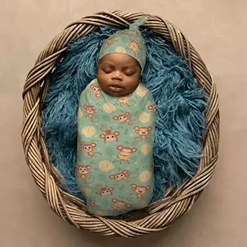 The Muishi Wild Cute Animals Monkey On Tree newborn swaddle blanket and hat set is designed for your baby's comfort and peace. This adorable monkey-themed swaddle blanket set is made from high-quality polyester material. The soft and skin-friendly texture of polyester gently touches your baby's delicate skin and provides all-day comfort. The blanket's warmth and flexibility help your baby snuggle perfectly and sleep peacefully. This swaddle blanket, which makes your baby feel safe, also attracts attention with its stylish design. Cute forest-themed animal patterns add joy to your baby's room and create a wonderful background for photo shoots. This set is an ideal gift option for newborn babies and is an excellent choice for baby showers. This set, which makes mothers' lives easier, helps improve your baby's sleep pattern and ensures a comfortable sleep throughout the night. Make a loving start for your baby from their first days with the Muishi Wild Cute Animals Monkey On Tree swaddle blanket set.