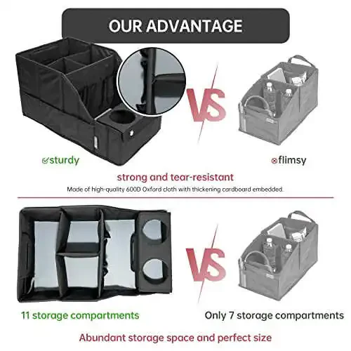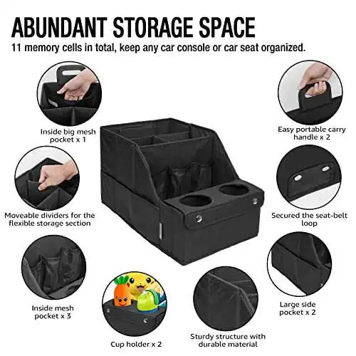 Bu düzenleyici, cep telefonları, tabletler, içecekler, atıştırmalıklar, kitaplar, oyuncaklar, şemsiyeler ve daha fazlası için bolca alan sunar. 2 bardak tutucu, içeceklerinizi güvenli ve düşmeden tutar.