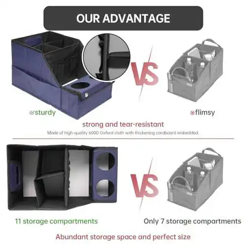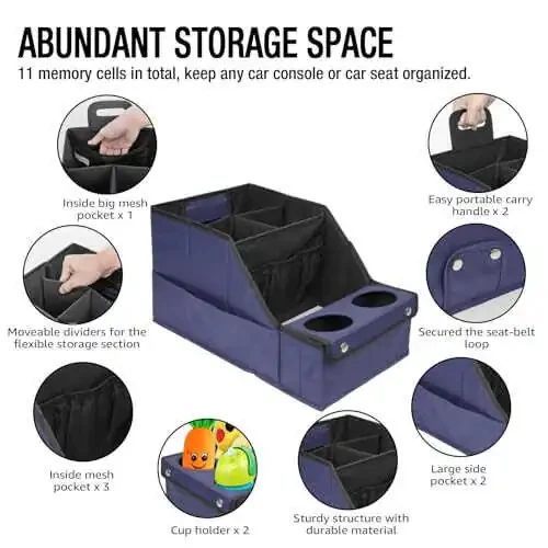 MULISOFT Avtomobil O'rindiq Organayzeri avtomobilingizning orqa o'rindig'ini tartibli va tashkil etilgan holda saqlash uchun ajoyib echimdir. 11 saqlash bo'limi va 2 stakan ushlagich bilan u telefoningiz, planshetingiz, atıştırmalıklaringiz, ichimliklaringiz va boshqa narsalaringizni tartibli saqlash uchun keng joy taklif etadi.