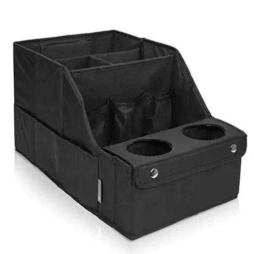 Bu tashkilotchi mobil telefonlar, planshetlar, ichimliklar, atıştırmalıklar, kitoblar, o'yinchoqlar, soyabonlar va boshqa ko'p narsalar uchun yetarli joyni taqdim etadi. 2 ta stakan tutgichi ichimliklaringizni xavfsiz va to'kilmasdan ushlab turadi.