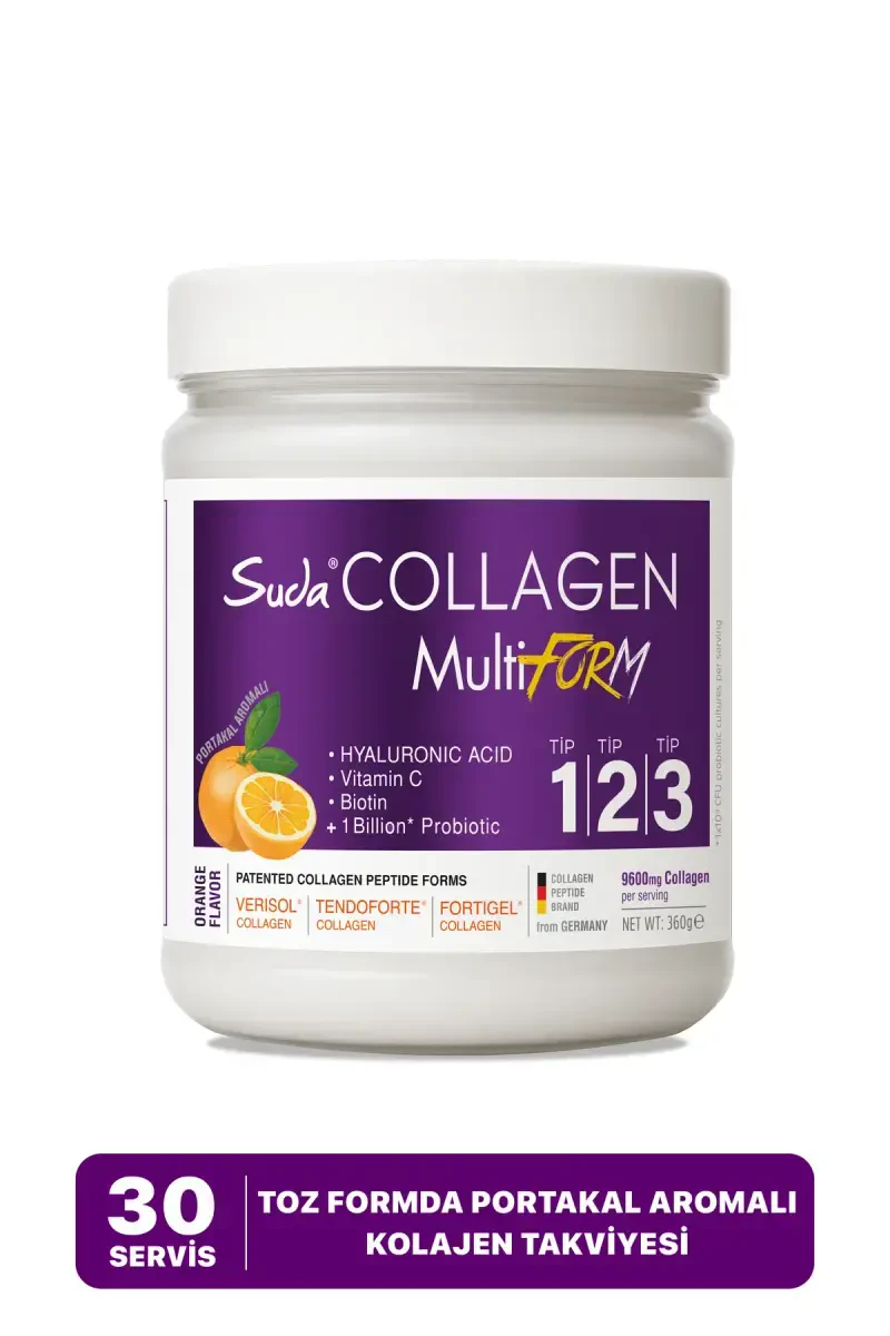 Multiform Orange Flavored Collagen is a delicious drink carefully formulated to support the natural beauty of your skin. With 9600mg of hydrolyzed collagen peptides (Type 1, Type 2, Type 3) in its convenient 360gr packaging, Multiform Orange Flavored Collagen helps maintain your skin's moisture balance, increase elasticity and reduce the appearance of wrinkles.