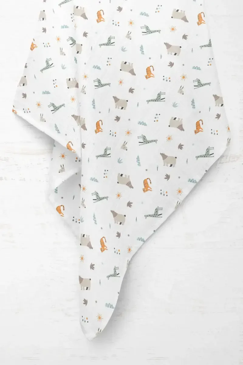 Muslin Baby Blanket Animal Party | 100% Cotton, XL Size, Multipurpose, OEKO-TEX Certified, Skin Friendly