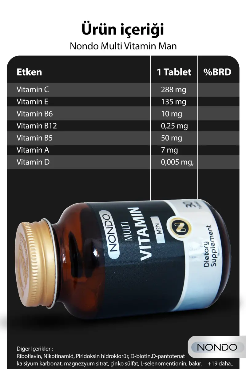 Multivitamin Men 30 Tablets is suitable for all men who need additional vitamin and mineral support in their daily diet. It is an ideal supplement especially for men who have a busy work schedule, exercise regularly or adopt a healthy lifestyle.