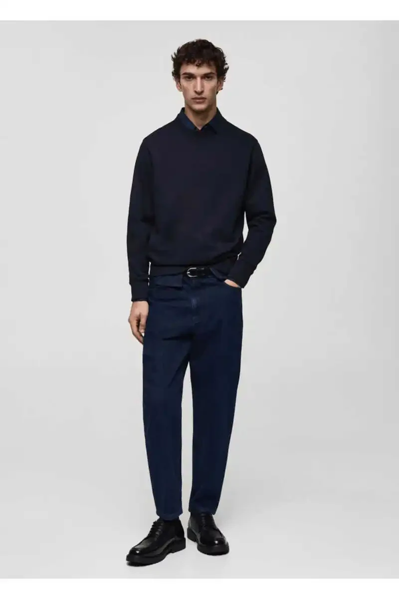 Klassik kesim sviter, paxta sviter, dumaloq yoqali sviter, Mango sviter, 80% paxta sviter