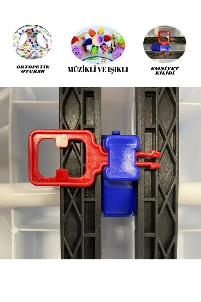 Your baby's first steps are now much more enjoyable and safe with the Musical and Lighted 3-Step Toy Baby Walker! This walker, which will help your little one develop their motor skills and have fun at the same time, will make life easier for both you and your baby. This walker, which attracts attention with its yellow color, will add joy to your baby's room.One of the most important features of the walker is that it has 3 different height settings. In this way, you can adjust the walker according to your baby's height and ensure that he walks in the most correct and comfortable position. Easily adjusting the height of the walker as your baby grows offers long-term use.Thanks to its silicone wheels, the walker does not scratch on parquet surfaces. In this way, you can protect the floor of your house and ensure that your baby moves safely. The silent structure of the wheels prevents your baby from being disturbed while playing or walking.The musical and toy front panel offers many different activities that will attract your baby's attention and entertain them. Lighted toys improve your baby's visual perception, while music stimulates their auditory senses. The toys on the front panel also help your baby develop hand-eye coordination. In this way, the walker can be used not only as a walking tool, but also as a play center.The seat is made of high quality fabric, considering your baby's comfort. Soft and comfortable fabric ensures that your baby is comfortable even when sitting in the walker for a long time. Thanks to the breathable feature of the fabric, your baby does not sweat and skin irritations are prevented. In addition, the seat can be easily removed and washed, thus providing hygienic use.Your baby's safety is paramount. For this reason, the walker is manufactured according to European standards. This walker, which is approved with safety certificates, does not contain any substances harmful to your baby's health. Thanks to its solid and durable structure, it ensures that your baby walks safely.Accompany your baby's first steps with the Musical and Lighted 3-Step Toy Baby Walker and offer him a safe and fun start.