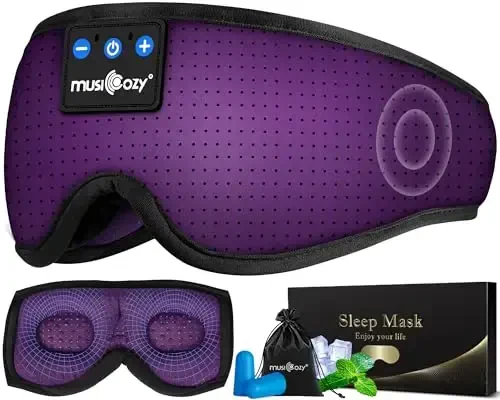Meet the MUSICOZY 3D Sleep Headphones Mask! Specially designed for side sleepers, these sleep headphones and eye mask promise you a peaceful sleep experience with their unique design and features. They are a perfect option for those looking for wireless Bluetooth headband headphones, cooling gadgets, and unique gifts. It offers an ideal solution for anyone who wants to end disturbing noises and light at night and get a comfortable sleep. With superior HD stereo sound quality, fast charging feature, eye-pressure-free design, and versatile use, the MUSICOZY sleep mask offers everything you need to improve your sleep pattern. Whether you use it at home, while traveling, or doing yoga, this mask will give you moments of relaxation and peace. Thanks to its innovative design, you won't feel any discomfort even when lying on your side. While completely blocking out light by covering your eyes, you can listen to your favorite music or sleep stories with the headphones. The MUSICOZY 3D Sleep Headphones Mask is not just a sleep mask, but also a lifestyle product. It's the most comfortable way to improve your sleep and start the day refreshed!