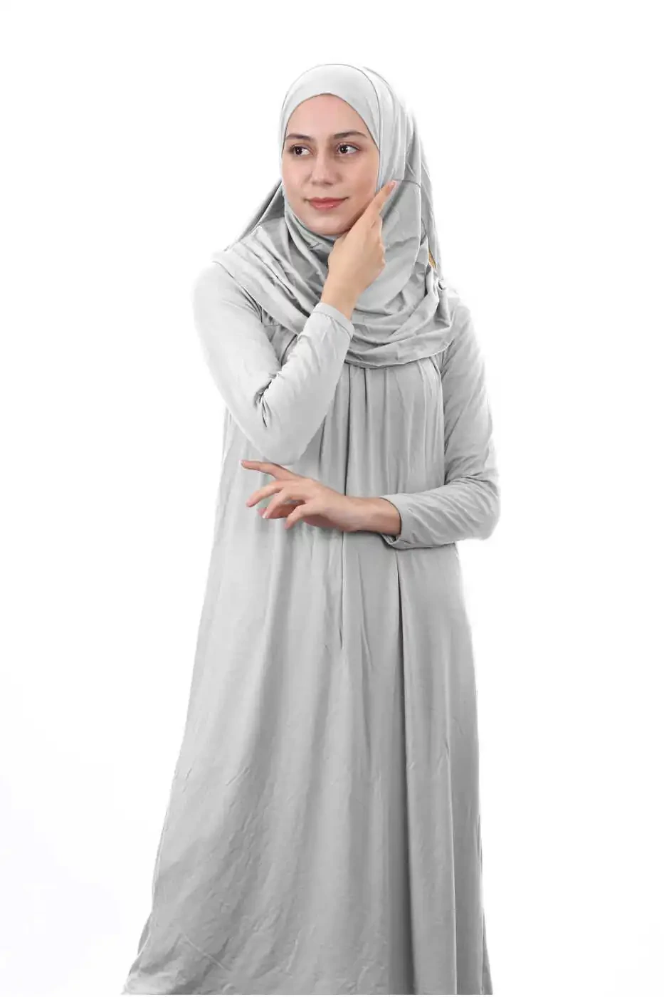 Garson Boy 12-15 Years Old Gray Self-Hijab One-Piece Women's Prayer Dress