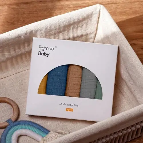 Egmao baby muslin bibs are designed with your baby's comfort and hygiene in mind. Each bib keeps your baby's clothes clean while keeping them stylish. With its colorful designs and superior quality, it adds a nice touch to your baby's daily combinations. This set of 5 bandana bibs is presented in a stylish box and can be a great gift option for newborn babies. Every mother or father will love this useful and stylish gift. By following the instructions for use (wash before first use, tumble dry on low heat, do not iron, do not dry clean and keep away from fire), you can use your bibs like the first day for a long time. If you are not satisfied with our product, please contact us. We are here to resolve your issues within 24 hours. We offer a 100% satisfaction guarantee.