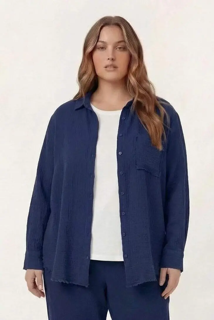 Müslin Kumaş Büyük Beden Gömlek Lacivert