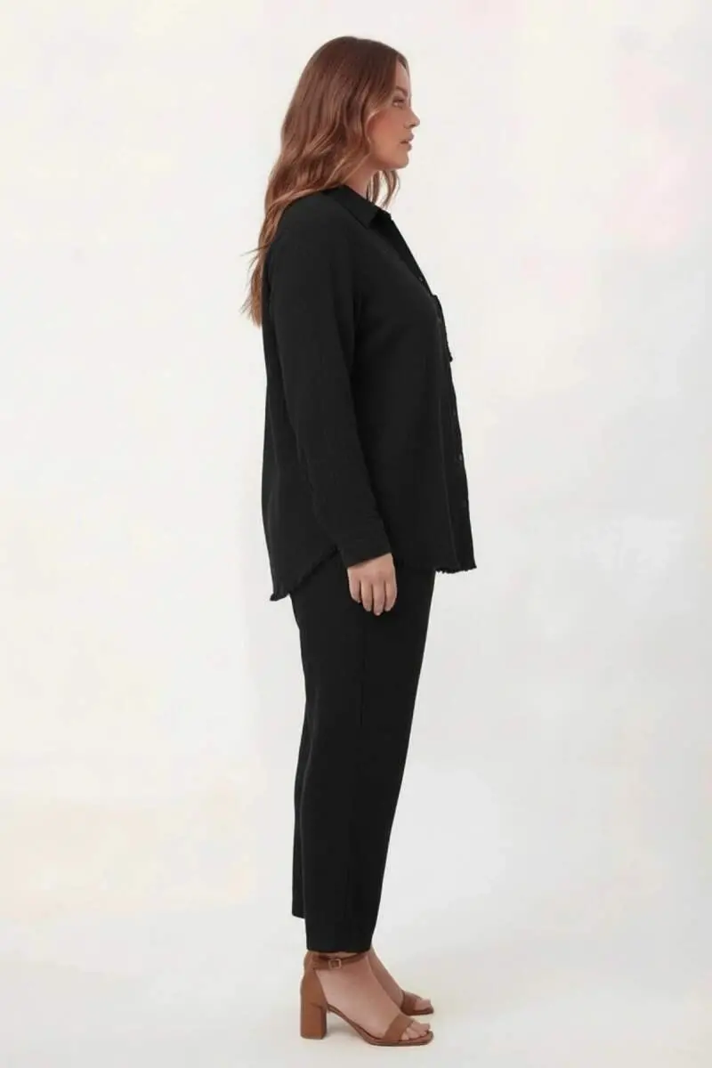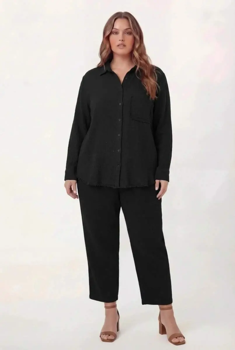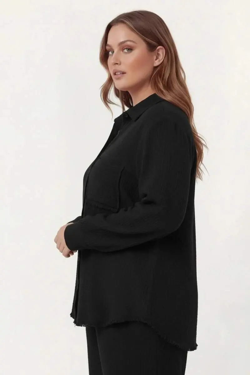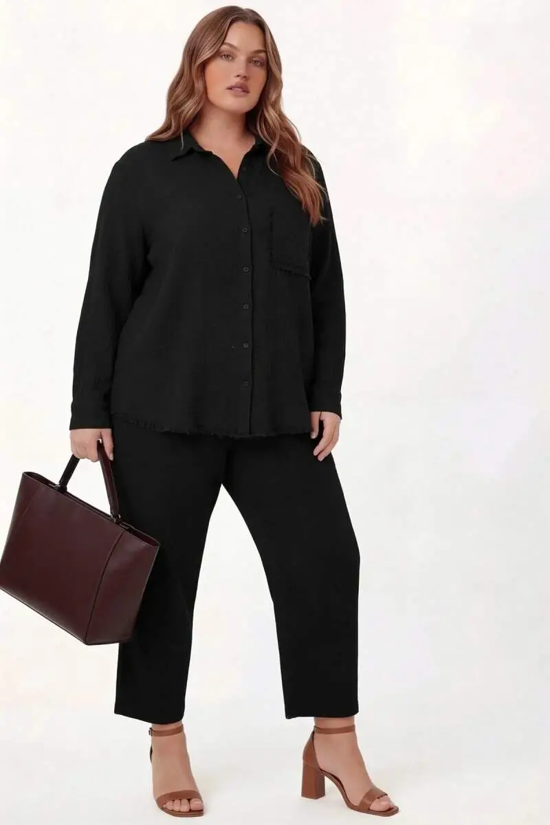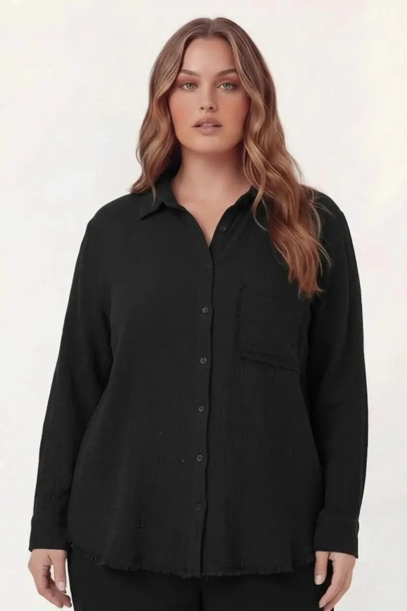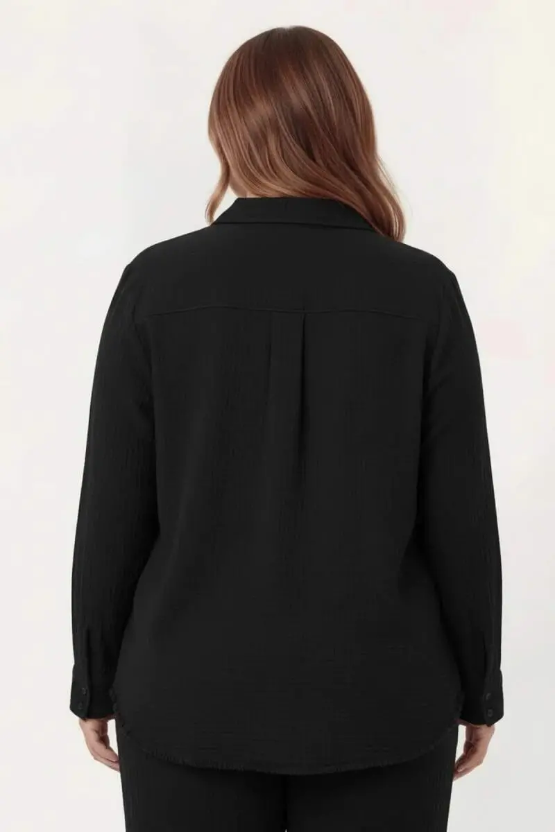 Müslin Kumaş Büyük Beden Gömlek Siyah