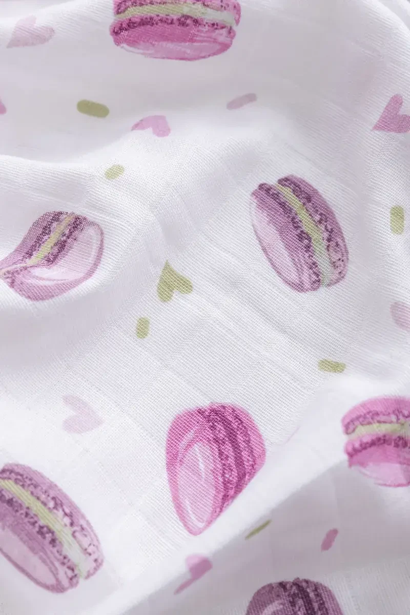 Bebek muslin oʻrtu, muslin bez, bebek oʻrtugʻi, ogʻiz mendili, paxta muslin, kundak oʻrtugʻi, emizish oʻrtugʻi, makaron desenli, OEKO-TEX, bebek tekstili