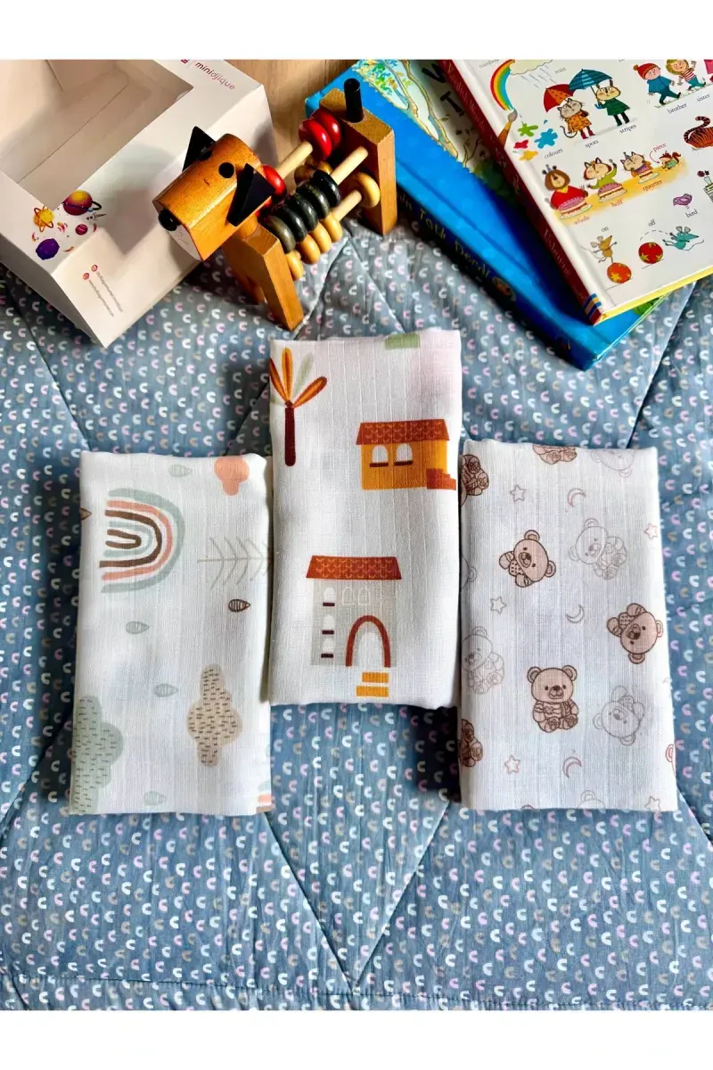 Muslin O‘rtu Battaniye Seti | Bebek Kundak O‘rtusi | Oeko-Tex Sertifikatli | 3'lü Set 80x80 sm