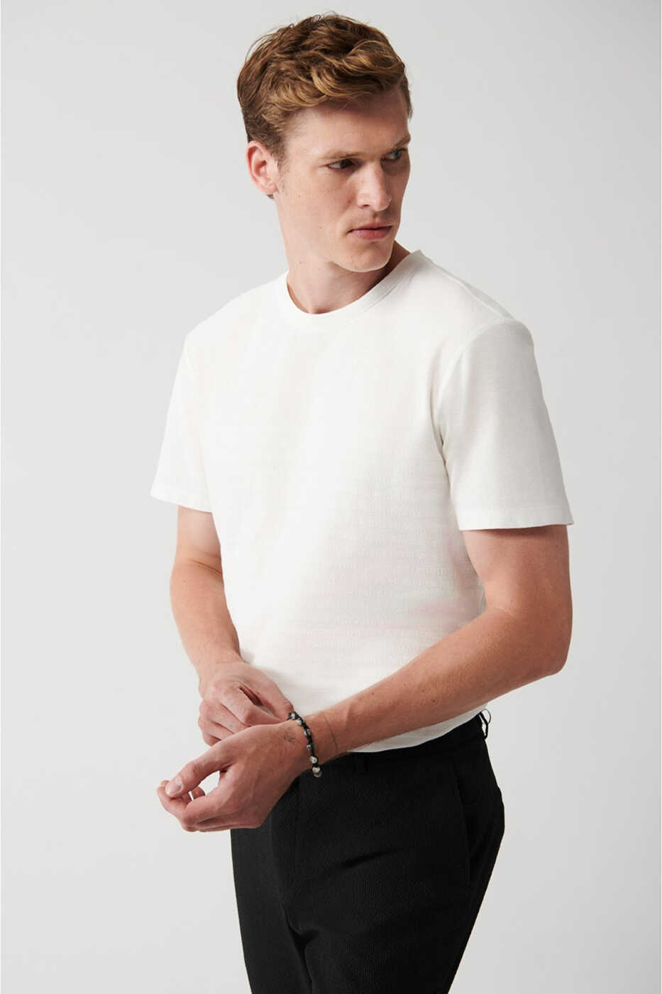 Сделайте заявление с помощью этой мужской белой футболки с круглым вырезом, сочетающей в себе стиль и комфорт! Футболка, изготовленная из 100% хлопковой ткани, обеспечивает комфорт в течение всего дня благодаря своей мягкой фактуре и дышащей структуре. Жаккардовый панно придает ей уникальный вид, а регулярный крой идеально дополняет ваше тело. Деталь с круглым вырезом добавляет современный штрих к вашему стилю. Эта футболка, совместимая с любой комбинацией, позволит вам создать стильный и комфортный образ в повседневной жизни, спорте или по особым случаям.