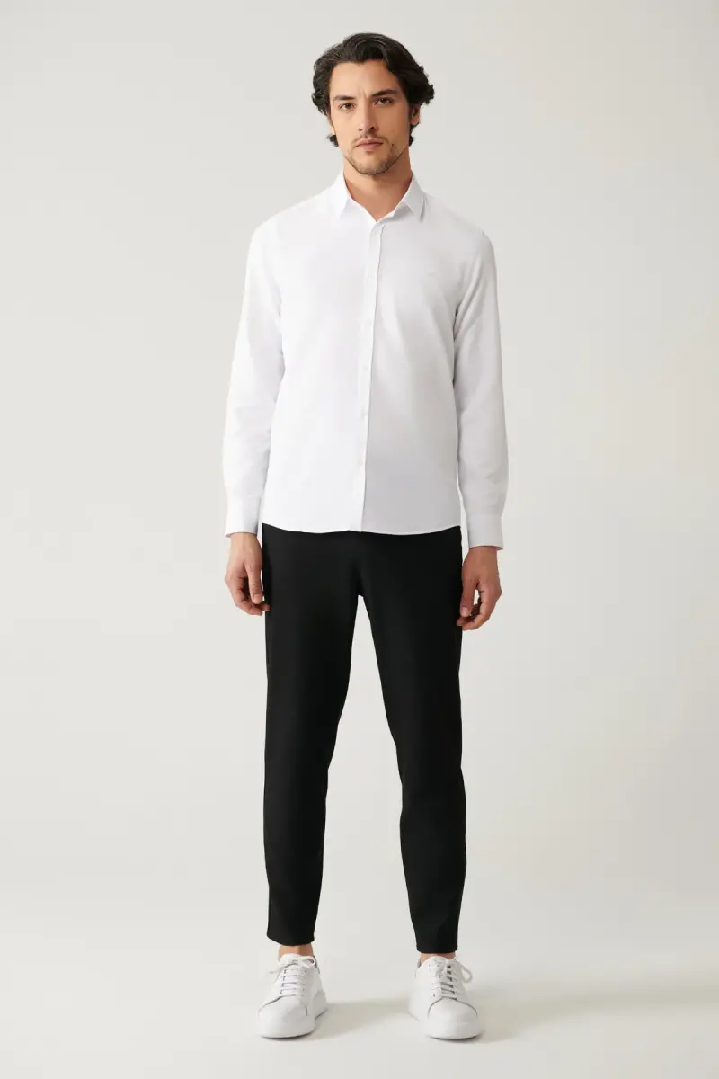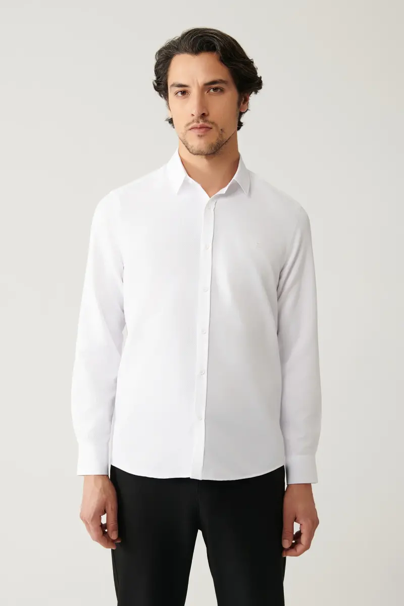 Мужская белая рубашка Классический воротник Легкая глажка Хлопковый микс Slim Fit A41y2237
