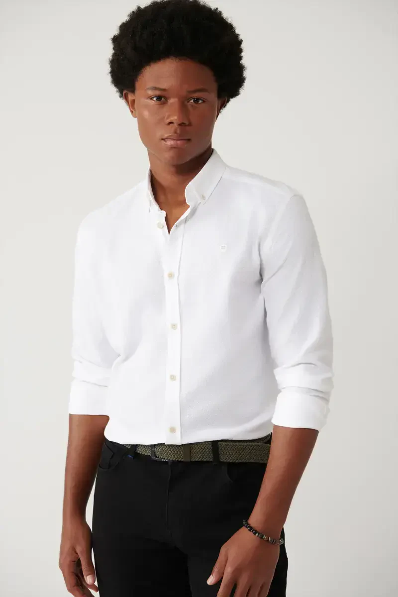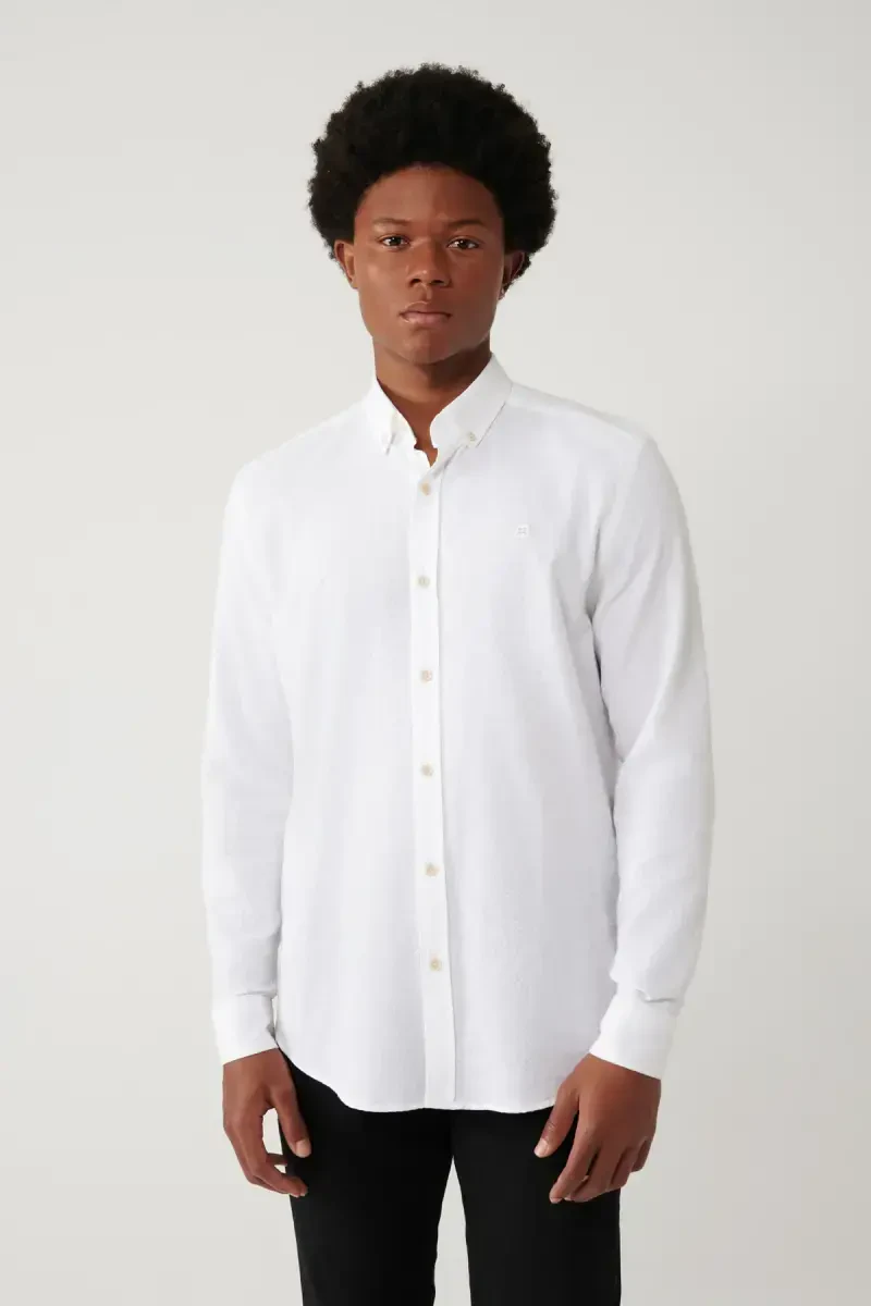 Мужская белая рубашка с пуговицами, 100% хлопок, армированный регулярный крой A41y2004 - идеальный выбор для тех, кто ищет вещь, сочетающую в себе стиль и комфорт. Изготовленная из 100% хлопковой ткани, рубашка обеспечивает комфорт на весь день благодаря своей мягкой текстуре, а ее армированная конструкция обеспечивает безупречный вид. Пуговицы на воротнике придают классический стиль, а крой regular fit обеспечивает свободу движений.