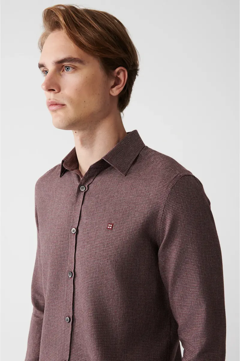 Мужская рубашка бордового цвета поможет вам дополнить свой стиль по особым случаям, в деловой жизни или в повседневных сочетаниях. Благодаря качественной ткани и стильному дизайну, это продукт, который вы можете использовать долгие годы.