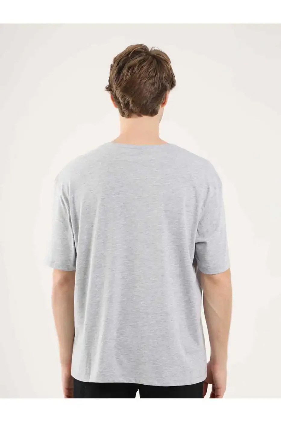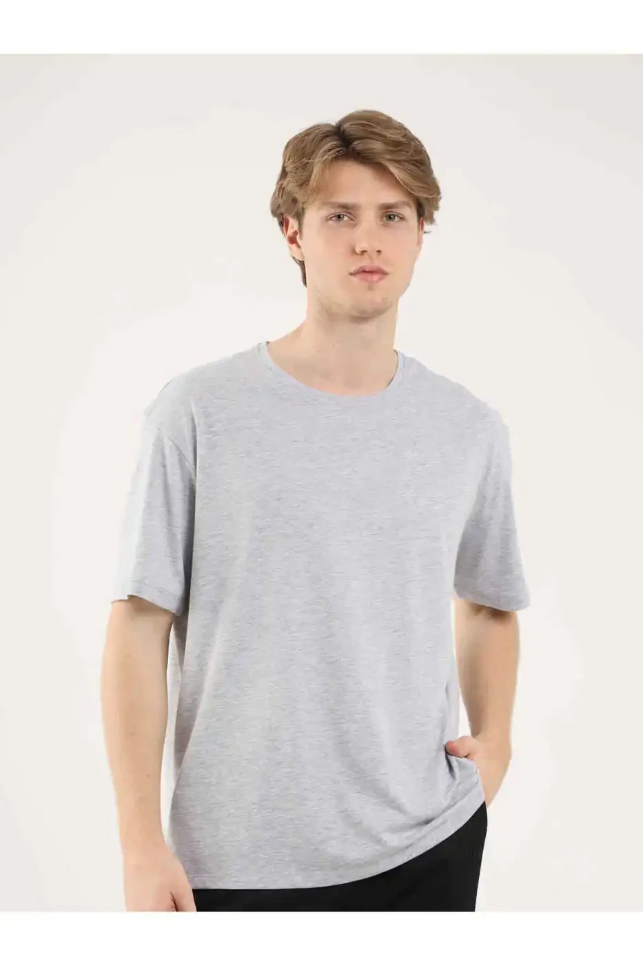Познакомьтесь с серым меланжевым мужским оверсайз футболкой с круглым вырезом, которая добавит стиль и комфорт вашему повседневному образу. Эта футболка, сочетающая в себе комфорт и стиль благодаря своему свободному крою, создана для любого стиля. Деталь круглого выреза обеспечивает классический вид.
