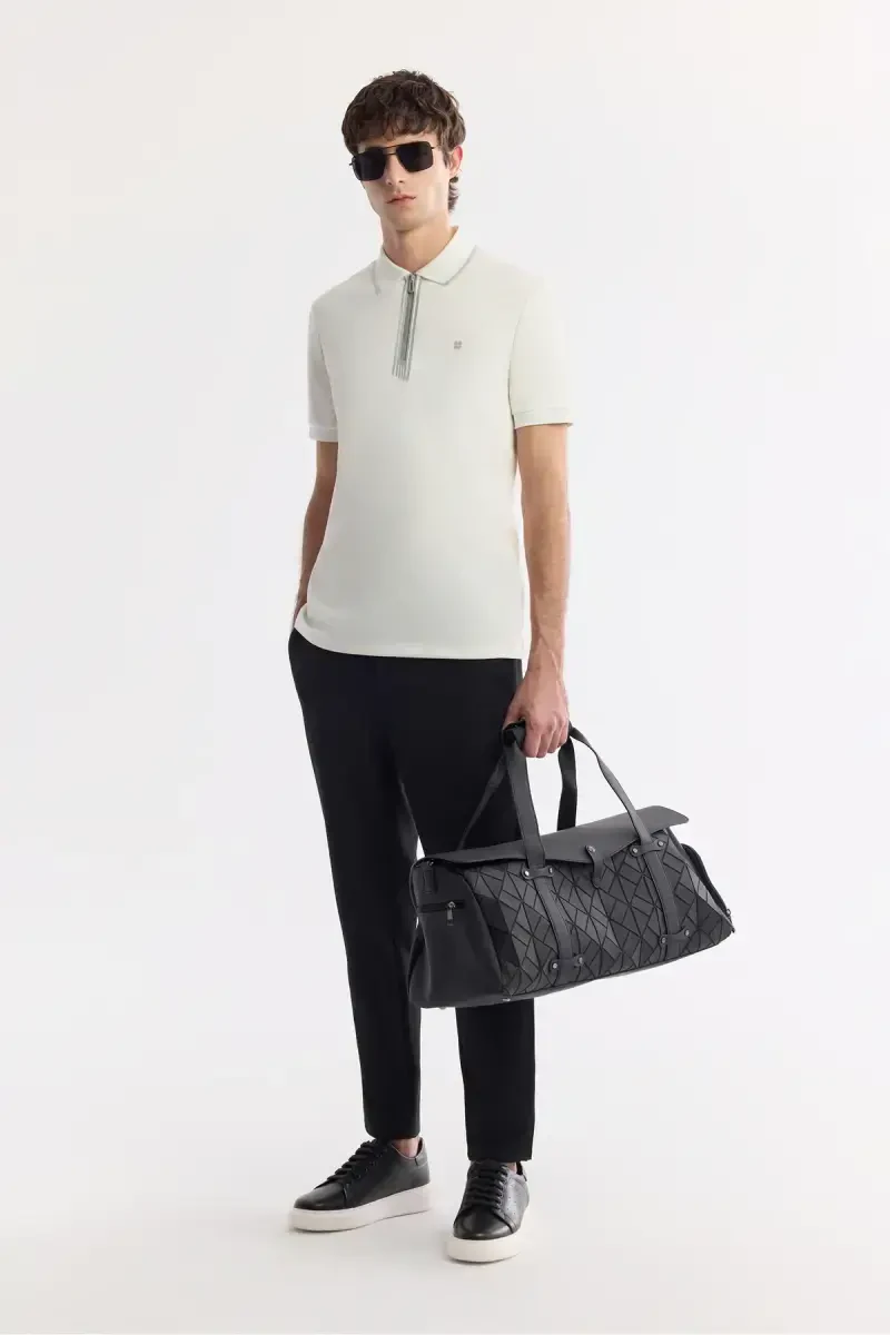 AVVA Erkek Ekru Polo Yaka Baskılı Bi-Stretch Tişört | A51Y1007