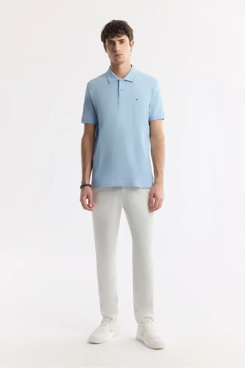Мужская Поло с коротким рукавом, светло-голубая, 100% хлопок, быстросохнущая, Regular Fit, не мнущаяся, с воротником поло | B001032
