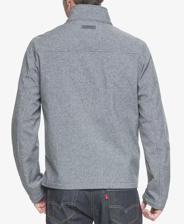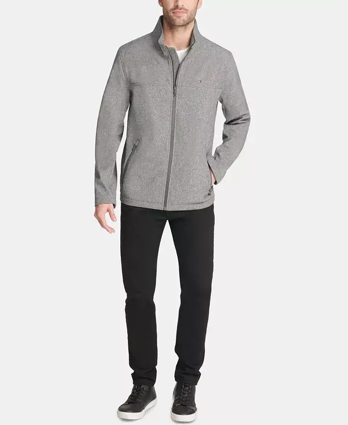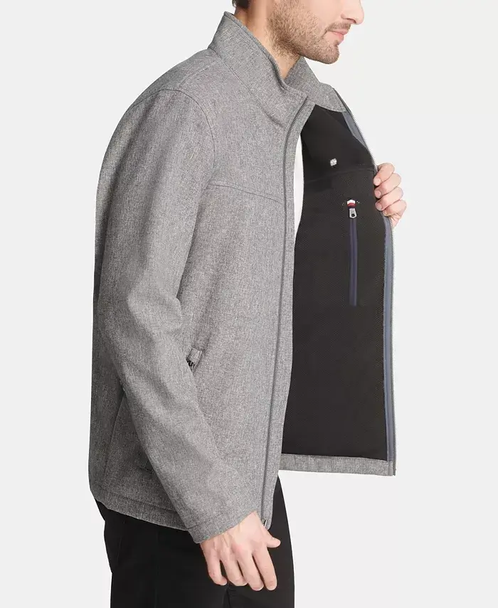 Men's Soft-Shell Classic Zip-Front Jacket-Heather Gray. 96% polyester, 4% spandex. Water-resistant. Machine wash.