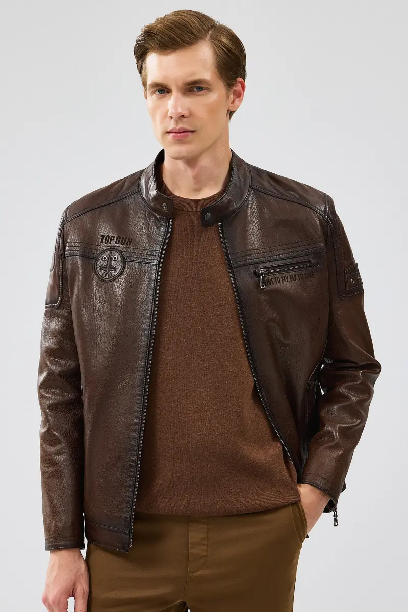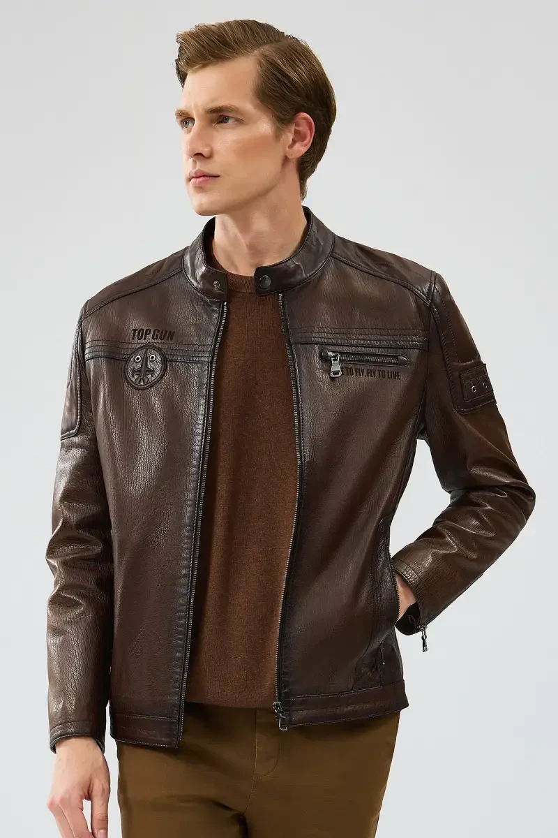 Мужская кожаная куртка Kawhi коричневого цвета Slim-fit с броней — отличный выбор, чтобы создать стиль и изысканность в вашем повседневном образе. Будь то для особых случаев, собеседований или повседневной жизни, вы всегда будете чувствовать себя стильно и уверенно в этой куртке.