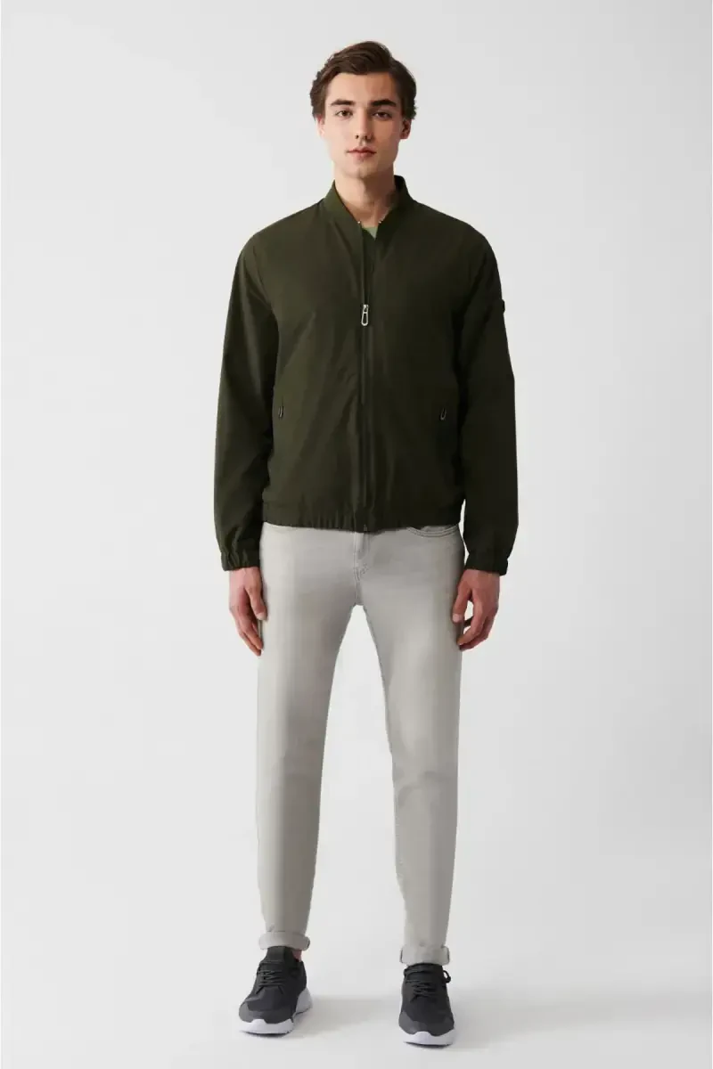 Почувствуйте стиль и комфорт с мужской легкой курткой свободного кроя с ребристой отделкой в хаки, водоотталкивающей, Comfort Fit B006001!