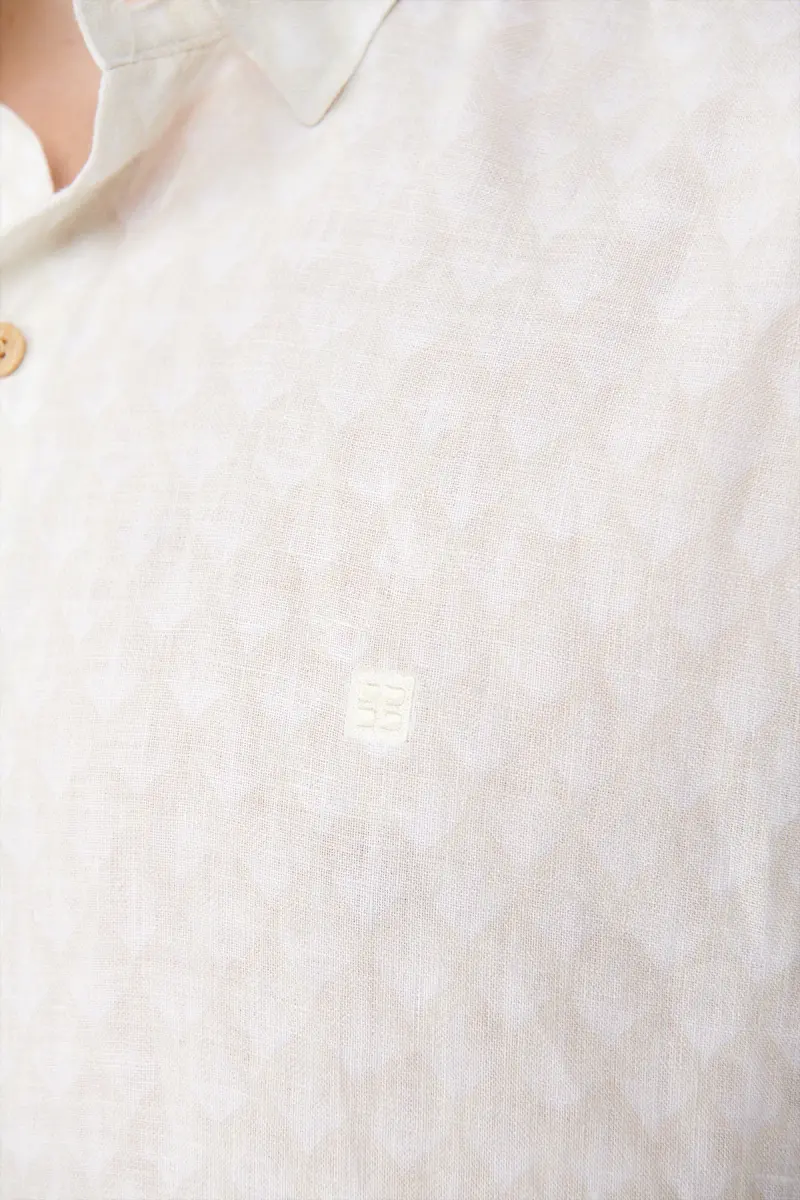 мужская рубашка, бежевая рубашка, льняная рубашка, британский воротник, рисунок в виде листьев, классический крой, стильная рубашка, комфортная рубашка