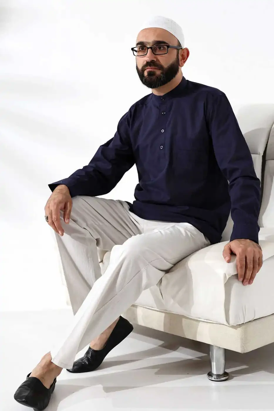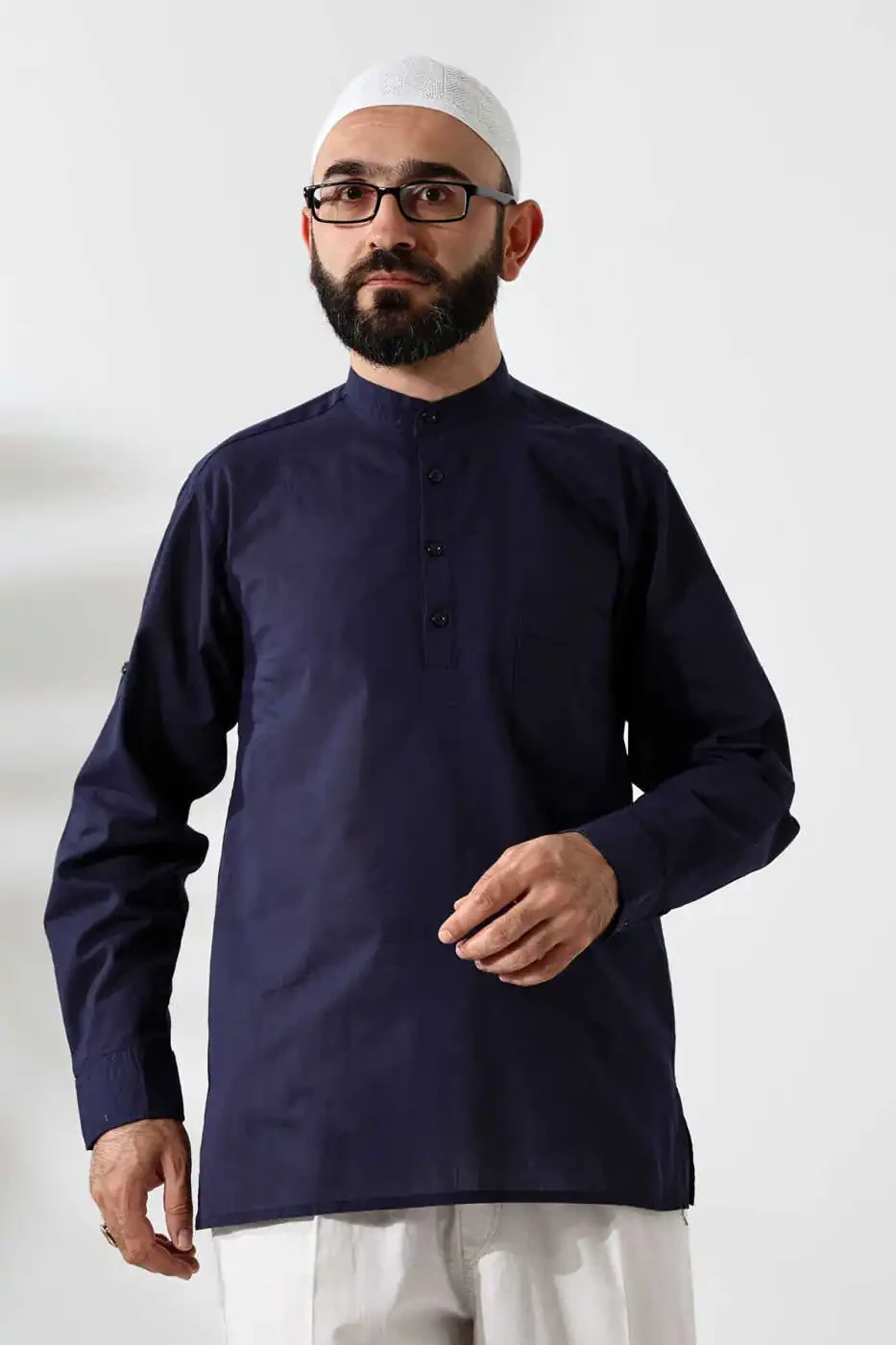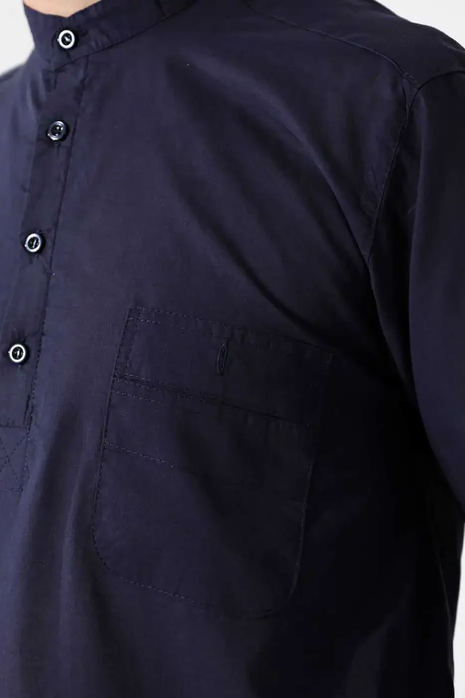 Мужская рубашка прямого кроя с воротником-стойкой, половинкой планки и карманами, 100% хлопок вуаль, темно-синий, для хаджа и умры, станет отличным выбором для повседневного использования. Благодаря своей свободной посадке и дизайну с воротником-стойкой, она обеспечит вам комфорт. Сделана из дышащей ткани 100% хлопок вуаль, которая сохранит прохладу вашей кожи в течение всего дня. Длинные рукава и карманы делают ее практичной в использовании, а однотонный рисунок и темно-синий цвет позволят с легкостью комбинировать ее с другими предметами гардероба. Прямой крой подарит вам свободу движений, а легкость вуали сделает ее еще более комфортной. Рубашка легко надевается и снимается благодаря застежке на пуговицах, что сэкономит вам время. Рекомендуется стирать ее при температуре 30 градусов в соответствии с инструкцией по уходу, что сделает ее идеальной для длительного использования.