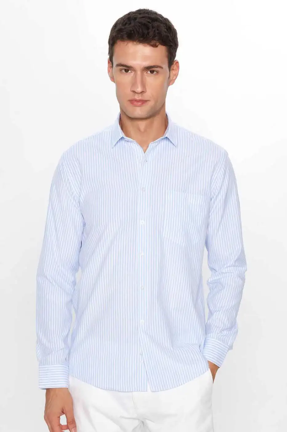 Эта мужская рубашка классического кроя, сочетающая в себе стиль и комфорт, является обязательной частью гардероба любого мужчины. Обычный крой обеспечивает идеальную посадку по фигуре, а длинные рукава придают рубашке как стиль, так и практичность. Однокарманный дизайн добавляет элегантности ее изысканному виду. Самая примечательная особенность рубашки - ее итальянский воротник, сочетающий в себе классические и современные штрихи. Благодаря своей мягкой фактуре рубашка обеспечивает комфортную носку в течение всего дня, что делает ее идеальным выбором для завершения вашего стиля на особых случаях и в повседневной жизни.