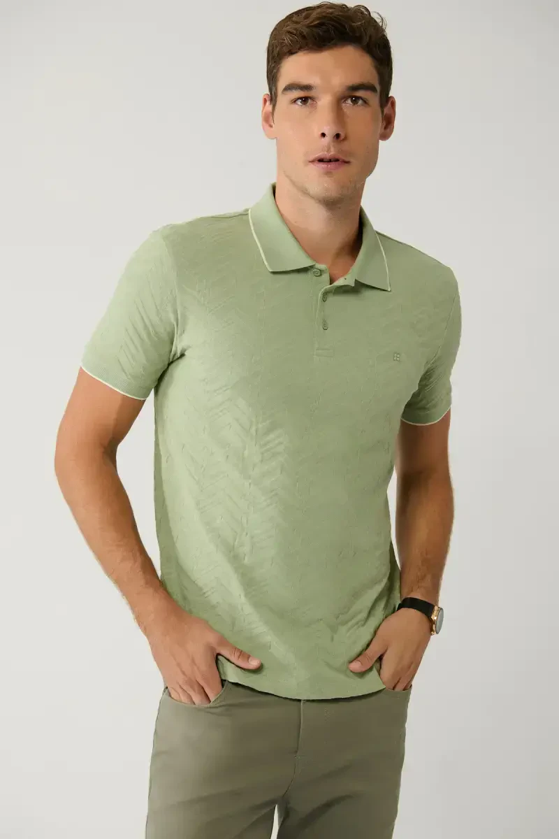 Мужская хаки 3-кнопочная рубашка-поло с жаккардовым рисунком Regular Fit A41y1147