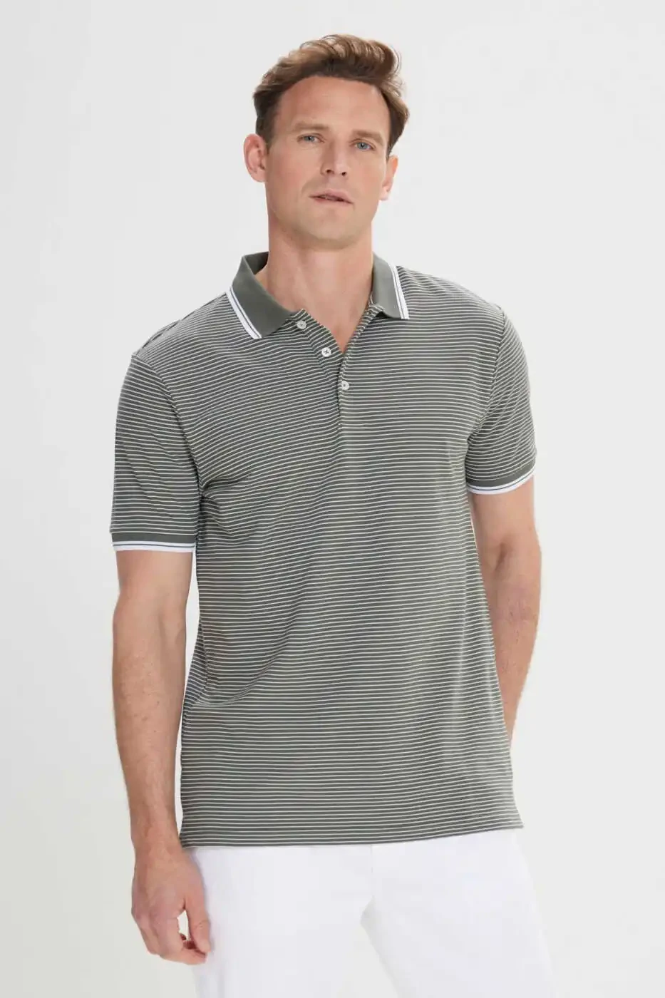 Поло - незаменимая часть мужского гардероба, сочетающая в себе элегантность и комфорт. Эта облегающая футболка-поло с хаки-белым полосатым рисунком придает современный и стильный вид и сочетает в себе качество Altınyıldız Classics. Благодаря трикотажной структуре эта дышащая футболка обеспечивает свободу движений, а ее хлопковый состав обеспечивает комфорт в течение всего дня. Эта футболка с узким кроем, которая адаптируется к контурам вашего тела, позволяет вам чувствовать себя комфортно, не жертвуя элегантностью, как в повседневной жизни, так и в особых случаях. Деталь воротника-поло придает классический и вневременной шик, а короткие рукава сохраняют прохладу в жаркую погоду. Сочетание хаки и белого цветов легко дополнит любой ваш образ, дополнив ваш стиль. Вы можете комбинировать эту футболку с джинсами, брюками чинос или шортами, создавая различные стили. Более того, благодаря простым инструкциям по уходу, он остается таким же, как в первый день, в течение длительного времени. Не пропустите эту футболку, выпущенную очень ограниченным тиражом! Закажите сейчас, чтобы воспользоваться скидкой и улучшить свой стиль. Поторопитесь воспользоваться этой возможностью, пока не закончились запасы! Помните, что этот продукт поставляется вам с гарантией Altınyıldız Classics.