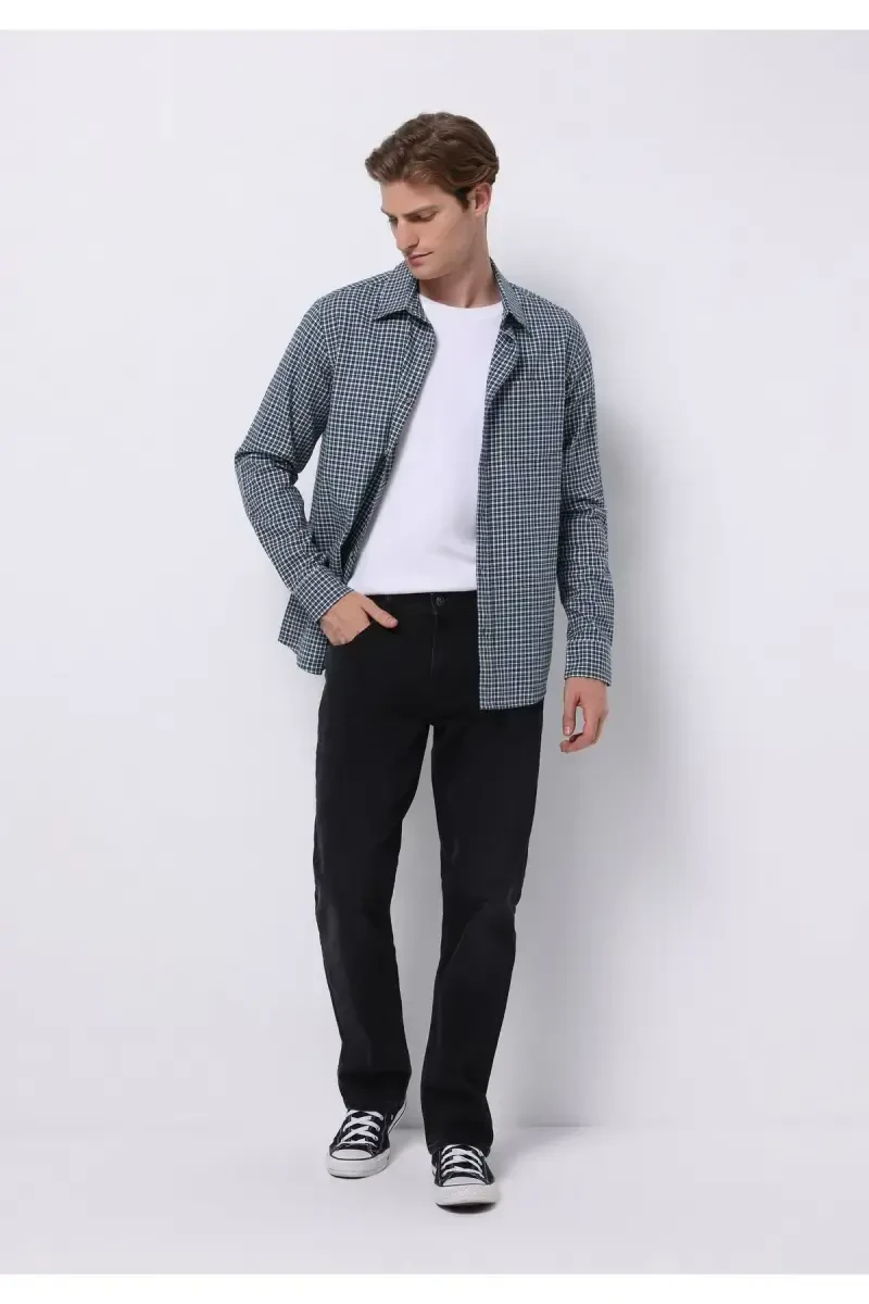 Закажите эту стильную и удобную мужскую рубашку с длинным рукавом в клетку темно-синего цвета Regular Fit уже сегодня и дополните свой стиль!