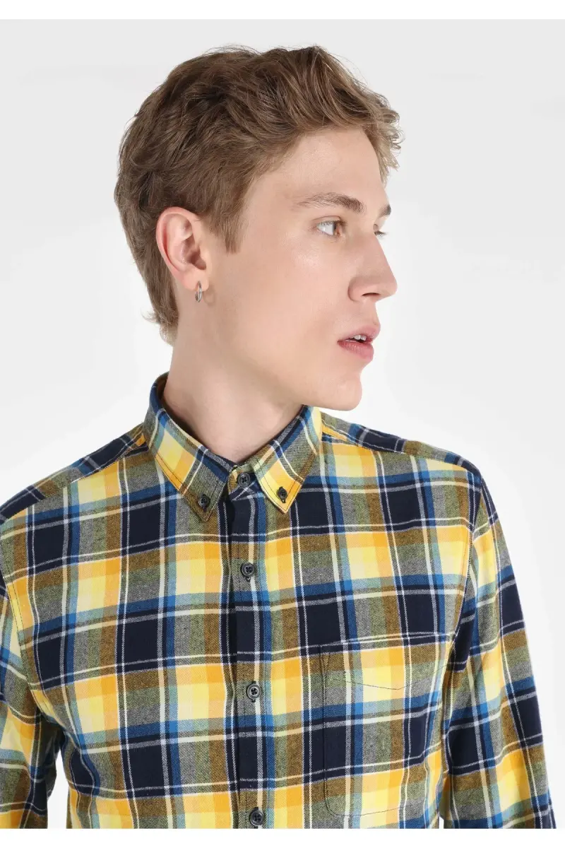 Выглядите стильно и уверенно с Слишком Подогнанной Клетчатой Синей Мужской Рубашкой с Длинным Рукавом!