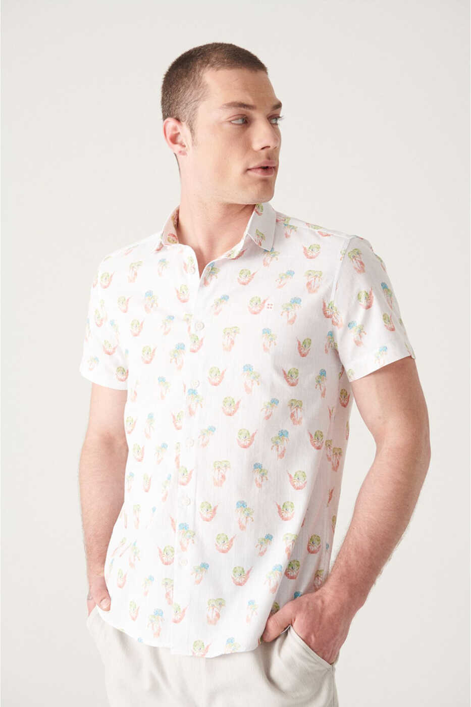 Сочетая стиль и комфорт для жарких летних дней, мужская рубашка с коротким рукавом из хлопка цвета экрю с принтом A21y2093 станет незаменимой частью вашего гардероба. Выполненная в экрю цвета с современным принтом, рубашка изготовлена из 100% хлопковой ткани. Ее легкая и дышащая структура обеспечивает комфортную носку в течение всего дня. Дизайн с коротким рукавом помогает вам оставаться прохладным в жаркую погоду, а современный крой делает вас более стильным.