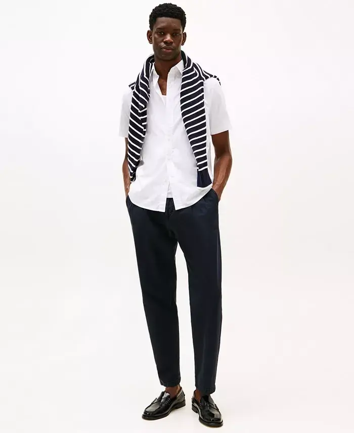 Сочетающая в себе вневременную элегантность и комфорт, рубашка Tommy Hilfiger Men's Short Sleeve Flex Poplin Regular Fit Shirt-Optic White станет незаменимым элементом вашего гардероба. Эта рубашка, гармонично сочетающая классический американский стиль с современным акцентом, изготовлена из высококачественного хлопкового поплина. Легкая и дышащая структура обеспечивает комфорт в течение всего дня, а прямой крой и изысканный дизайн позволяют выглядеть стильно в любой ситуации. Короткие рукава, идеально подходящие для жарких летних дней, и удобная застежка на пуговицах обеспечивают практичность. Эта рубашка идеально подходит для самых разных случаев — от деловых встреч до повседневной жизни, — и станет отличным выбором для мужчин, которые ценят сочетание стиля и комфорта. Оптически белый цвет гармонирует с любым вашим нарядом, придавая вашему гардеробу утонченность. Простая стирка и уход дополняют практичность использования. Сочетание качественных материалов и мастерства исполнения этой рубашки Tommy Hilfiger обеспечит ее долговечность и сохранение стиля и комфорта на долгие годы. Если вы хотите чувствовать себя особенным, не жертвуя комфортом ради стиля, вы обратились по адресу. Эта рубашка впечатлит вас своим стилем и качеством.