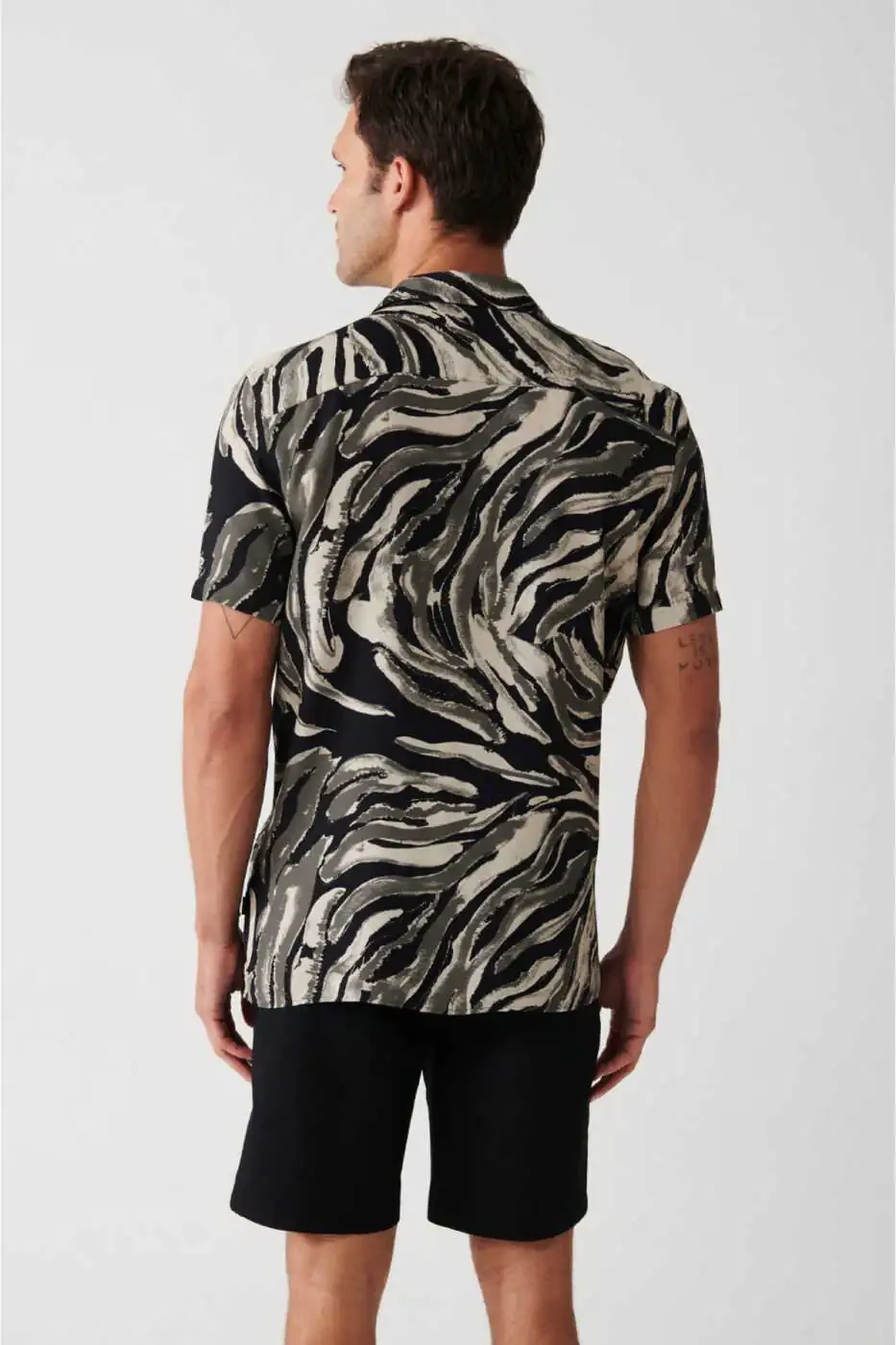 Мужская рубашка с коротким рукавом, черного цвета, из вискозы, с кубинским воротником и леопардовым принтом A31y2195