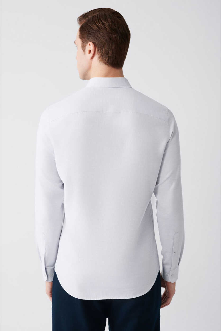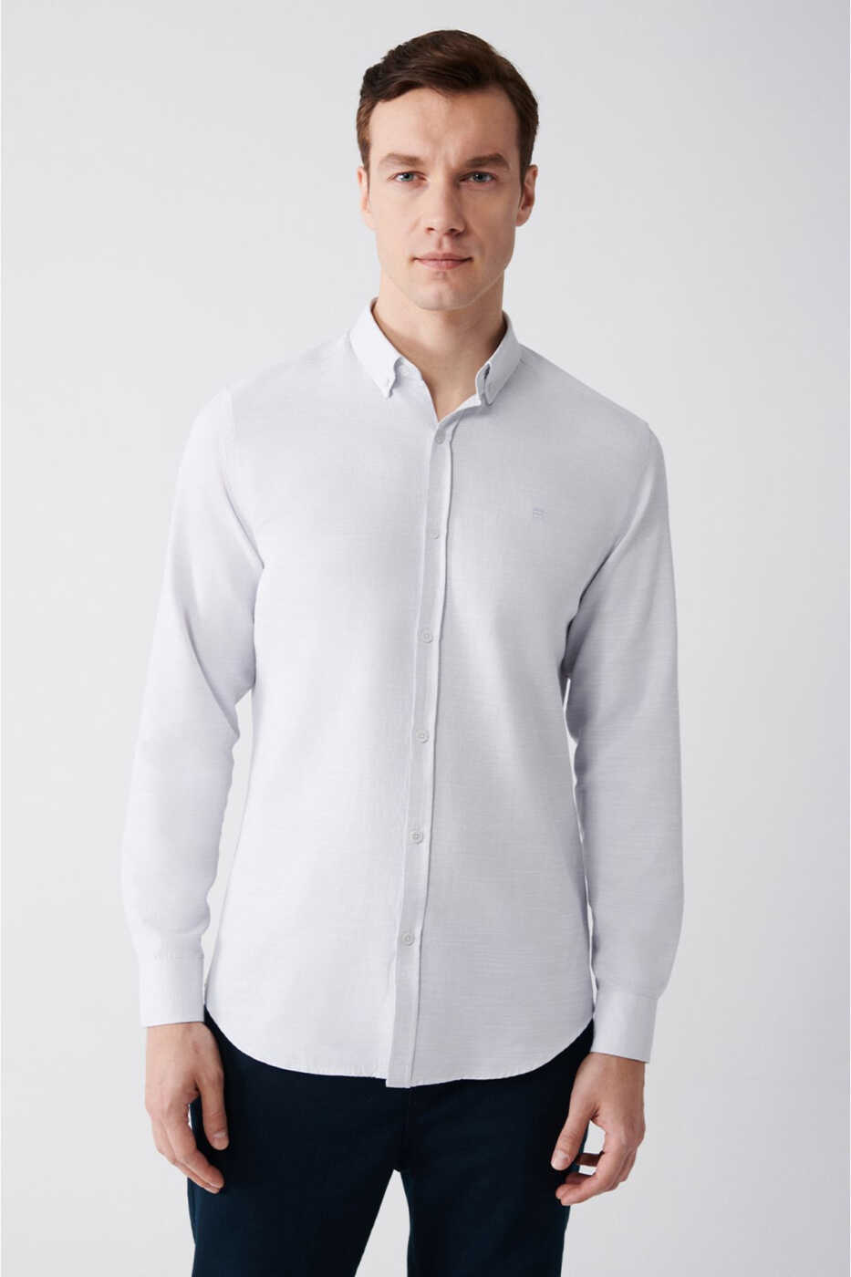 мужская рубашка, серая рубашка, рубашечный воротник на пуговицах, узкий силуэт, рубашка с узким силуэтом, мягкая фактура, хлопковая рубашка, A31y2015, мужская одежда, стильная рубашка, удобная рубашка