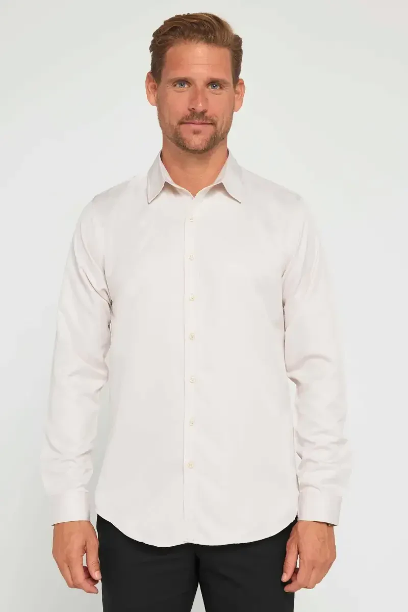 приталенная рубашка, рубашка с длинным рукавом, рубашка легкая в глажке, рубашка впитывающая влагу, дышащая рубашка, рубашка с фактурным галстуком, рубашка на четыре сезона, рубашка цвета камня, мужская рубашка, стильная рубашка, удобная рубашка