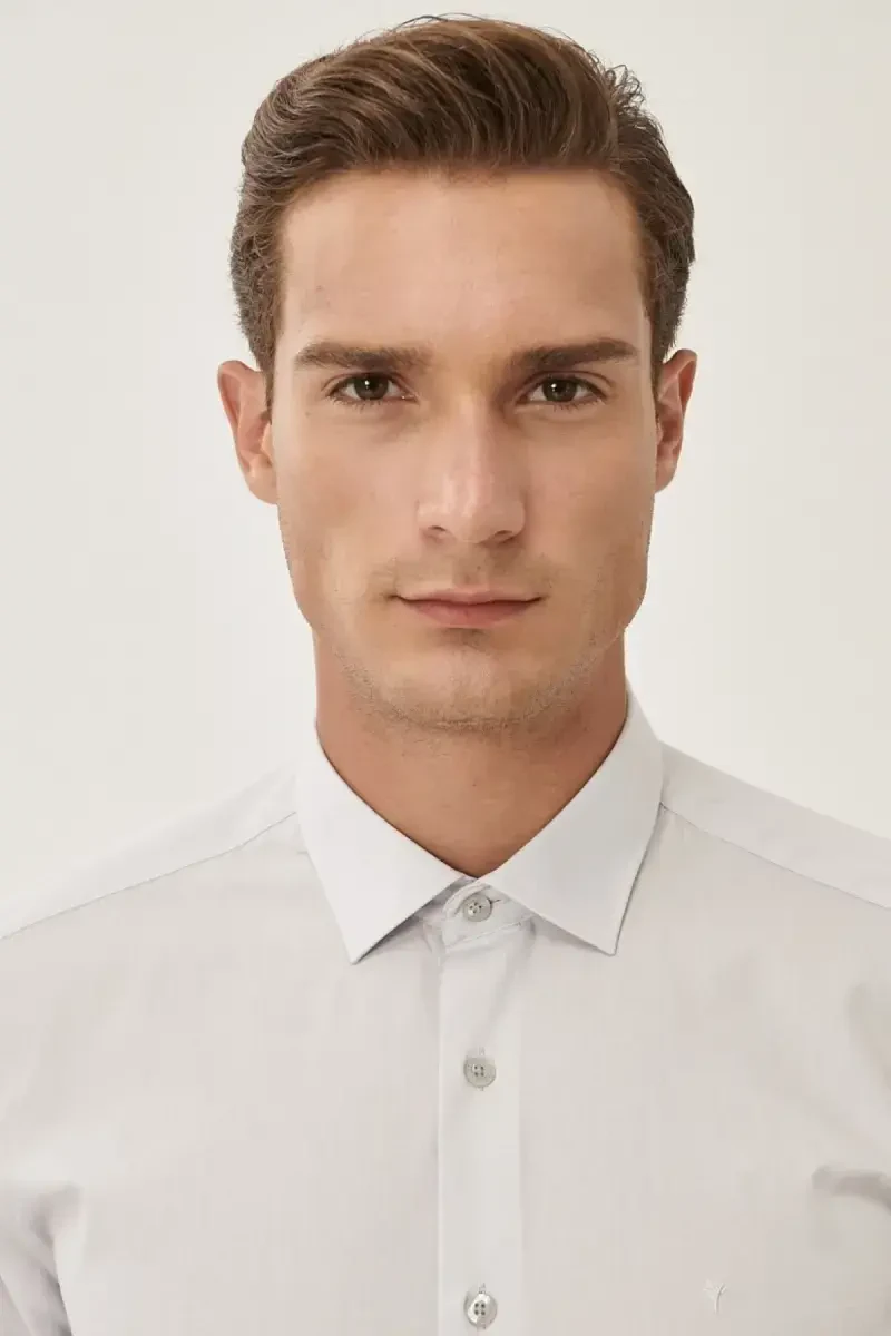 Сочетайте элегантность и комфорт с мужской серой хлопковой рубашкой, не требующей глажки, Slim Fit, зауженного кроя, с классическим воротником. Эта рубашка, которая станет незаменимой вещью в гардеробе современного мужчины, обеспечит безупречный внешний вид как в деловой жизни, так и в особых случаях. Благодаря ткани поплин из 100% хлопка вы будете чувствовать себя комфортно и дышаще в течение всего дня. Крой Slim Fit создает элегантный силуэт, облегающий ваше тело, а классический дизайн воротника легко сочетается с любым стилем. Одним из самых больших преимуществ рубашки является ее свойство non-iron, не требующее глажки. Она позволяет вам всегда выглядеть ухоженно и стильно, не беспокоясь о глажке во время напряженного рабочего графика или в путешествиях. Серый цвет предлагает универсальные возможности для комбинирования; вы можете легко сочетать его с пиджаками, брюками и галстуками разных цветов. Дизайн с длинными рукавами - идеальный вариант для переходных сезонов и прохладной погоды. Легкая и прочная структура ткани поплин обеспечивает долговечность рубашки и сохранение ее формы. Эта рубашка, сочетающая в себе классические и современные линии, обеспечивает профессиональный вид в офисе, а также завершает ваш стиль на званых ужинах или специальных мероприятиях. Мужская серая хлопковая рубашка, не требующая глажки, Slim Fit, зауженного кроя, с классическим воротником - отличный выбор для мужчин, которые ценят качество и комфорт. Эта рубашка, которая станет одним из основных элементов вашего гардероба, всегда заставит вас выглядеть стильно и уверенно. Откройте для себя эту рубашку, которая является идеальным выбором для мужчин, ищущих элегантность, комфорт и практичность, и добавьте ценность своему стилю. Эта рубашка идеально подходит для вас, чтобы чувствовать себя комфортно и стильно в течение всего дня.