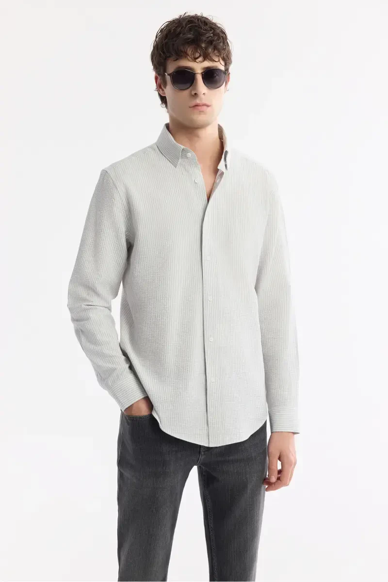 Мужская рубашка Comfort Fit в полоску с вафельным узором